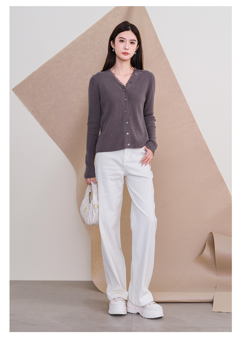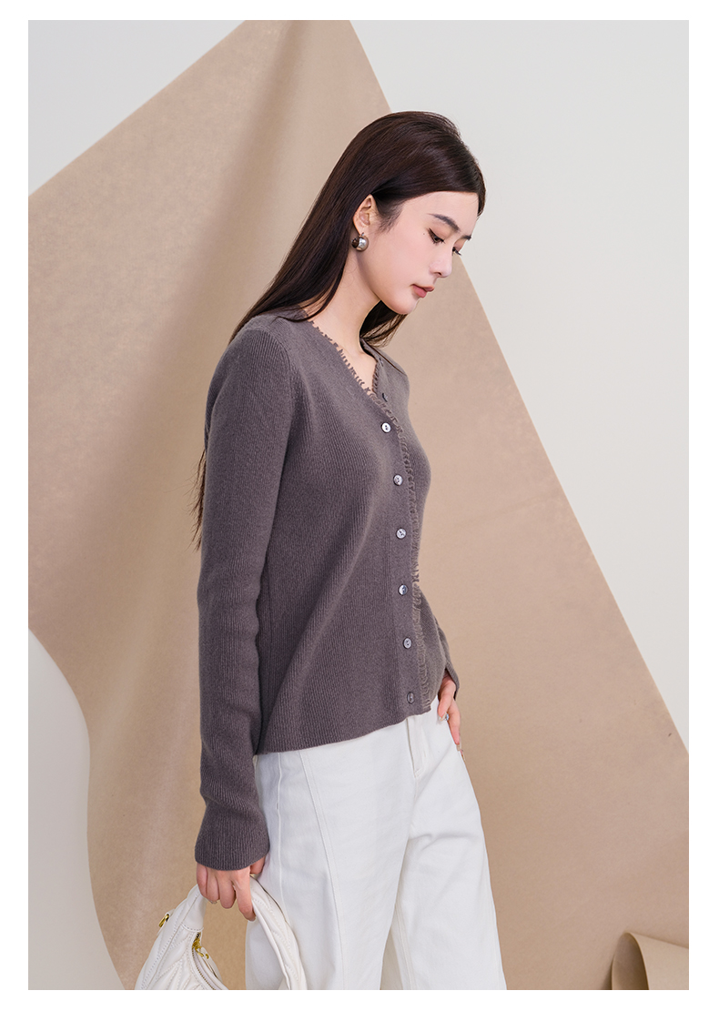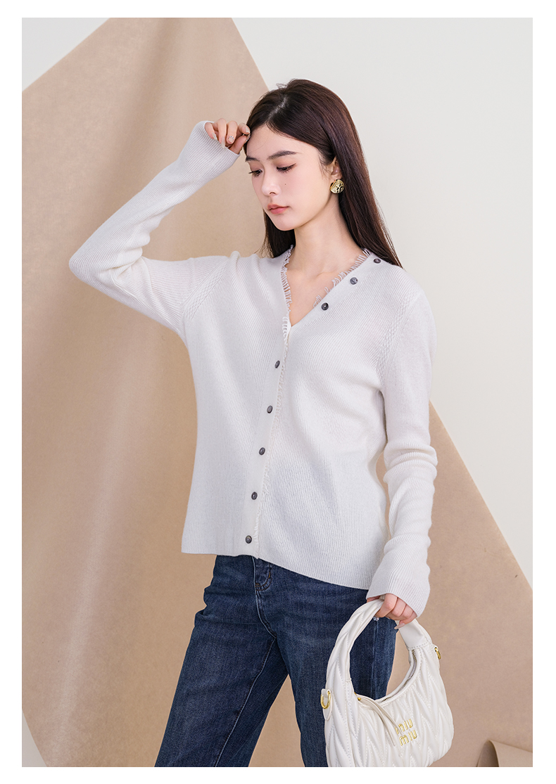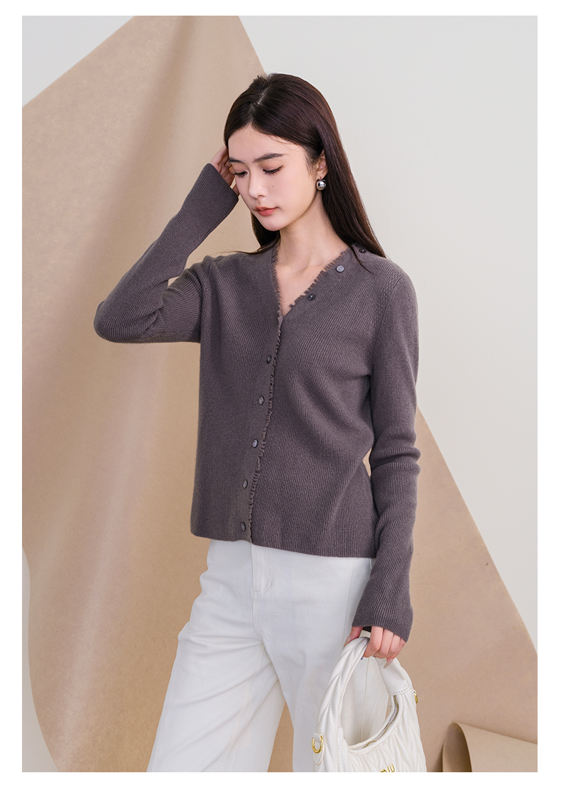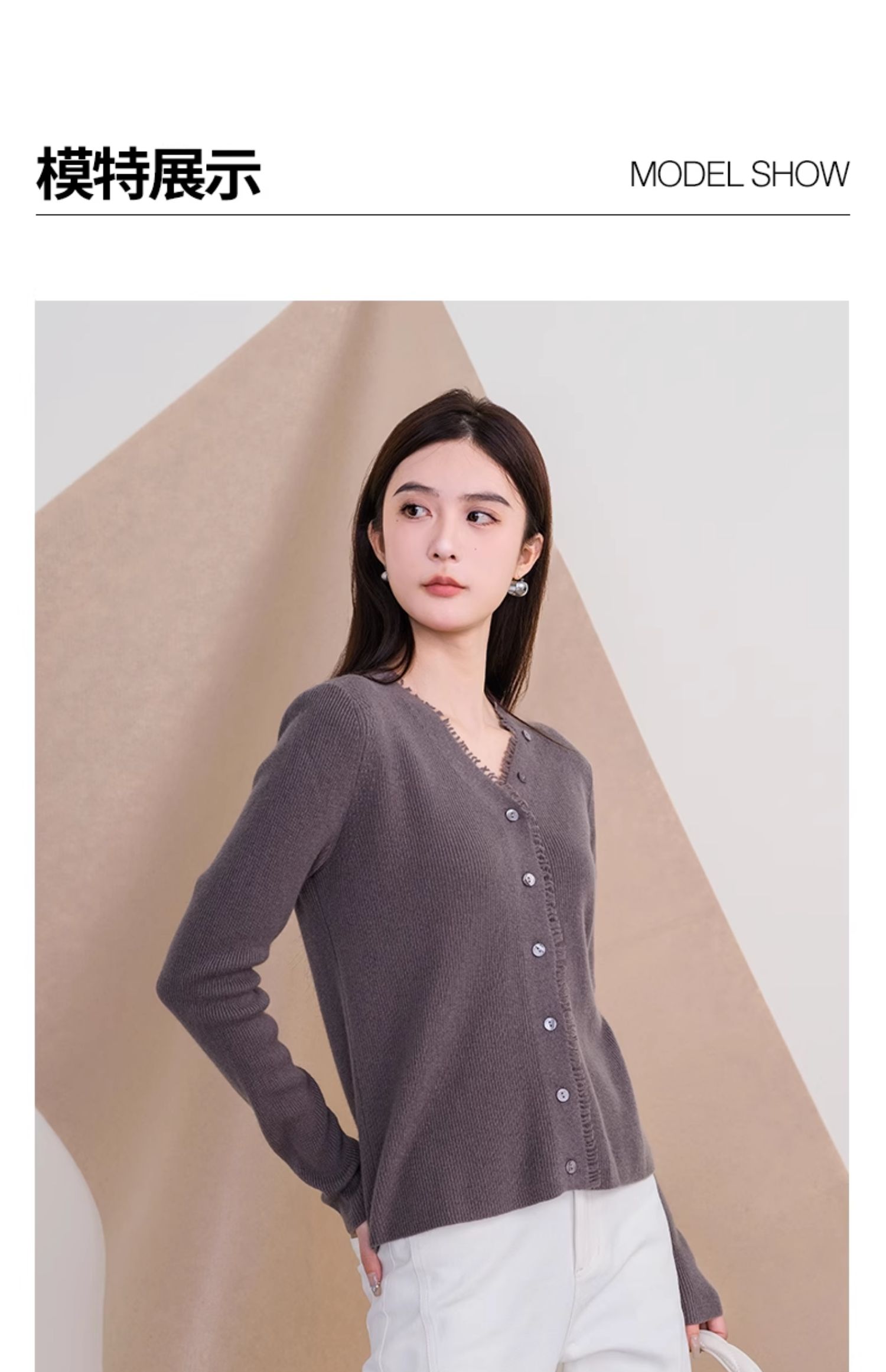 oldcolour欧珂冬季新款V领长袖修身时尚毛织短外套女P430506A1