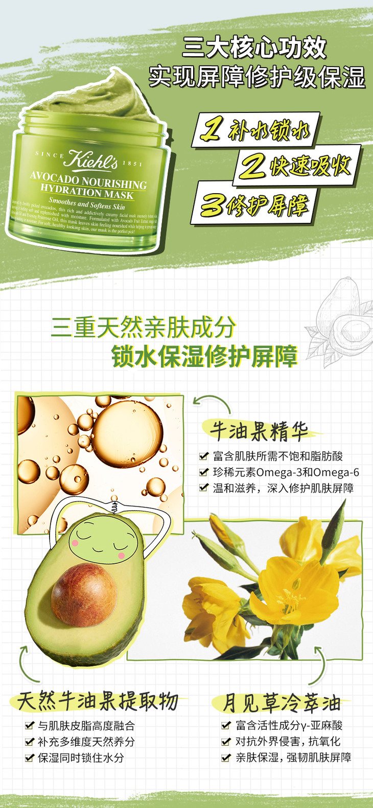 Kiehls科颜氏牛油果丰润保湿面膜100g 补水保湿修复肌肤屏障滋润