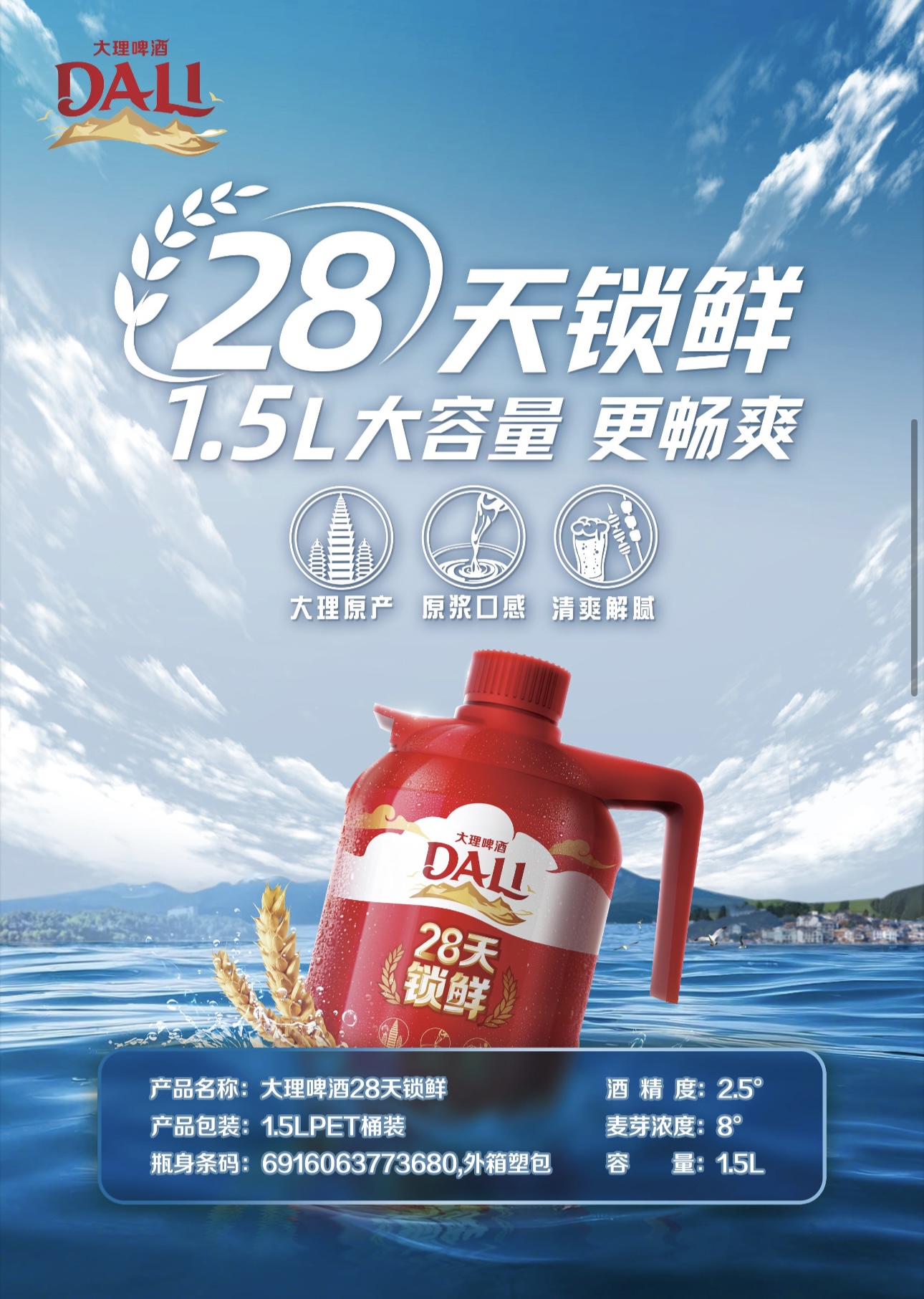 大理啤酒28天锁鲜啤酒1.5L