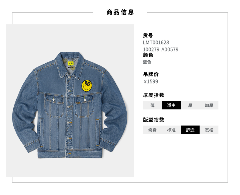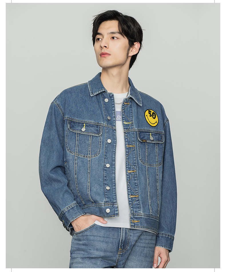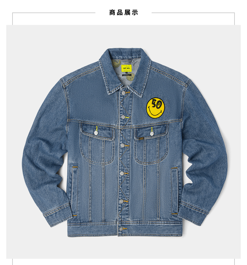 【Smiley®联名】Lee22春夏新品舒适蓝色男牛仔夹克外套LMT001628