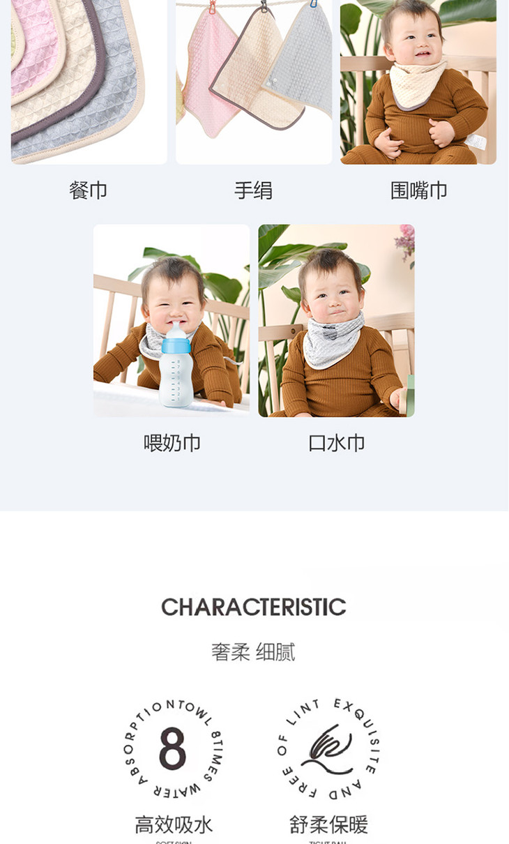 德国nmay 华夫格汗巾+口水巾组合套餐 打嗝布洗脸巾洗澡巾纯棉材质