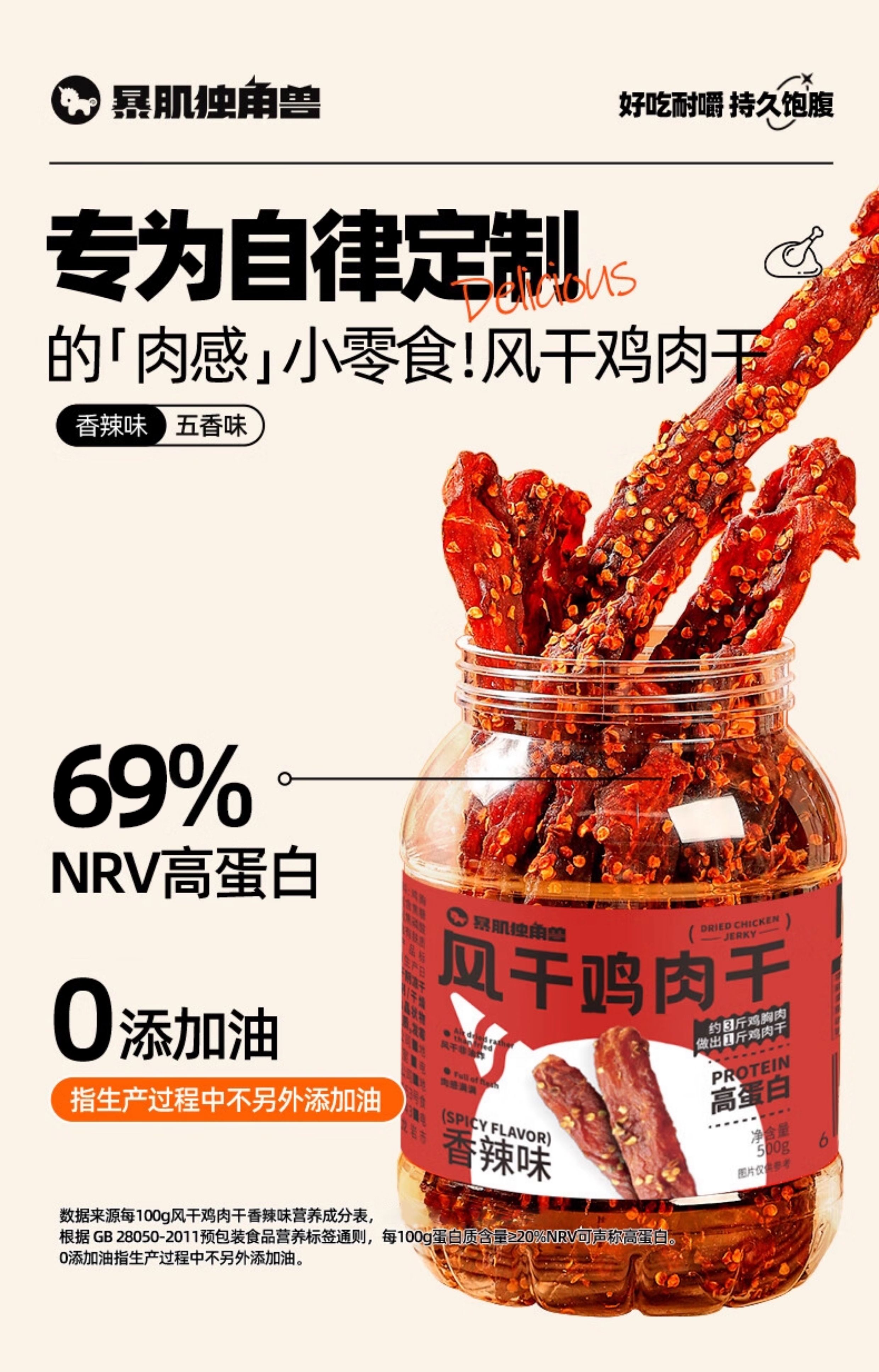 暴肌独角兽风干鸡肉干条鸡胸肉减低即食大桶脂肪高蛋白健身零食品