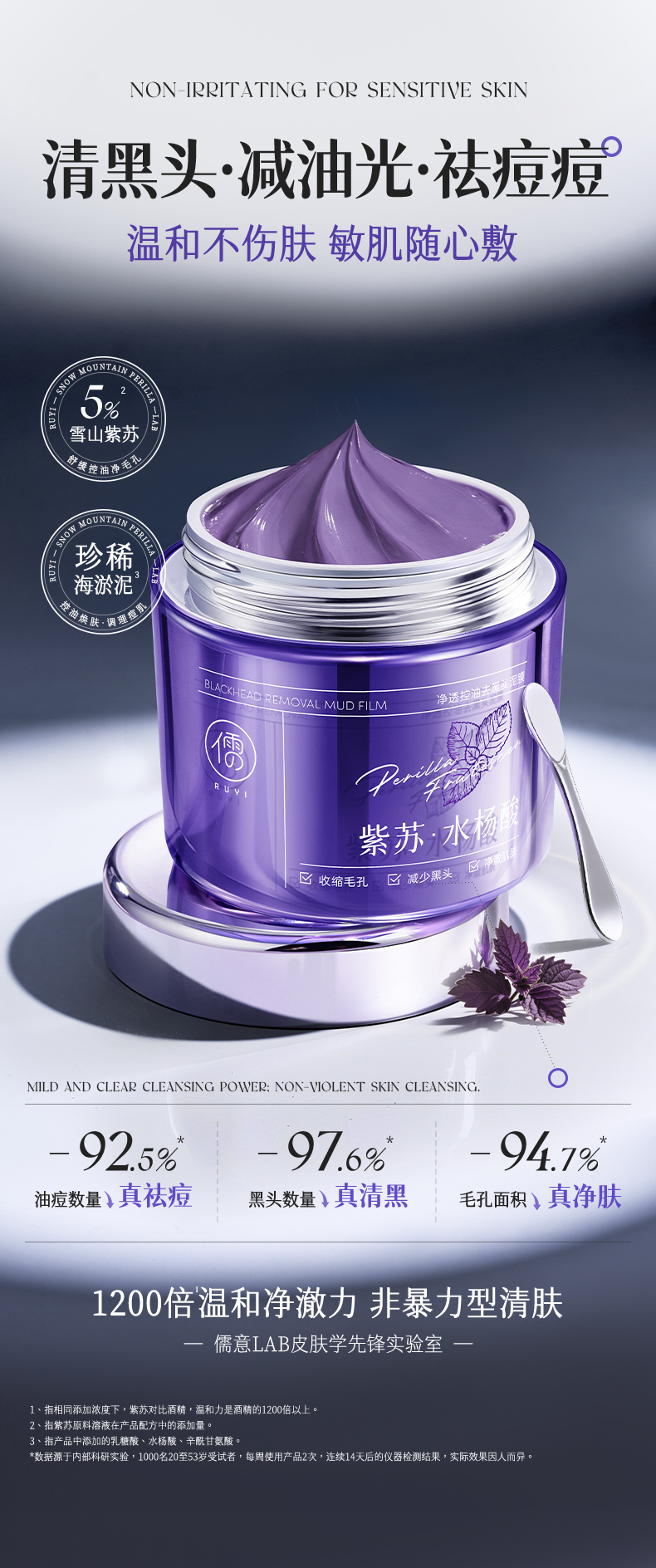 儒意净透控油去黑头泥膜130g 清洁泥膜去黑头粉刺闭口收缩毛孔水杨酸涂抹面膜|儒意官方商城