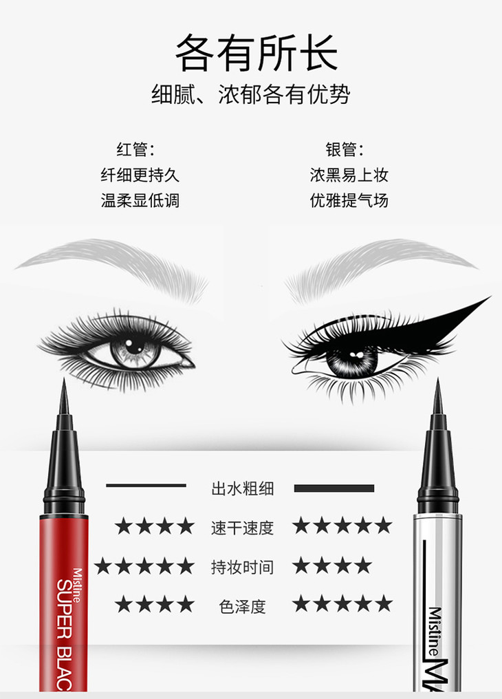 【现货】泰国mistine眼线液笔 防水不晕染速干软细毛头超好用伪素颜眼线笔