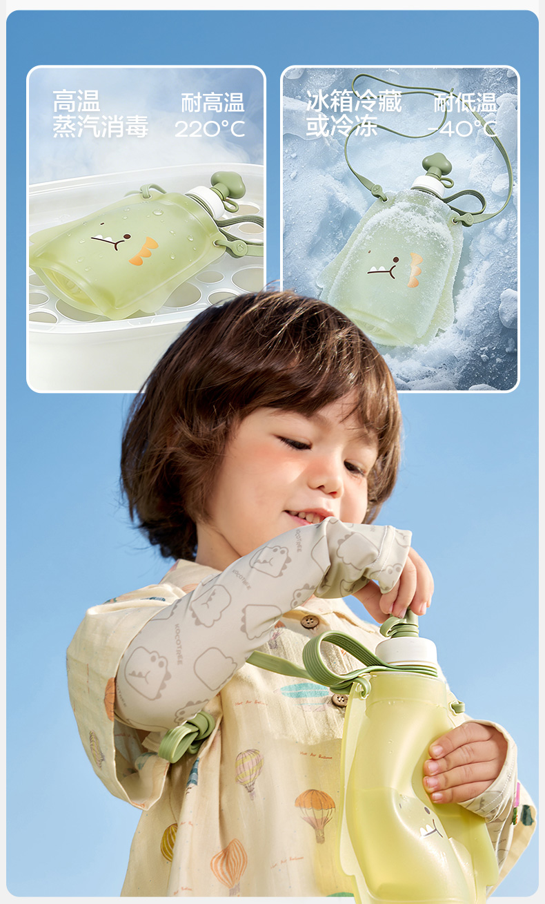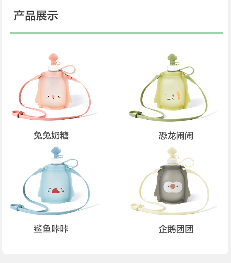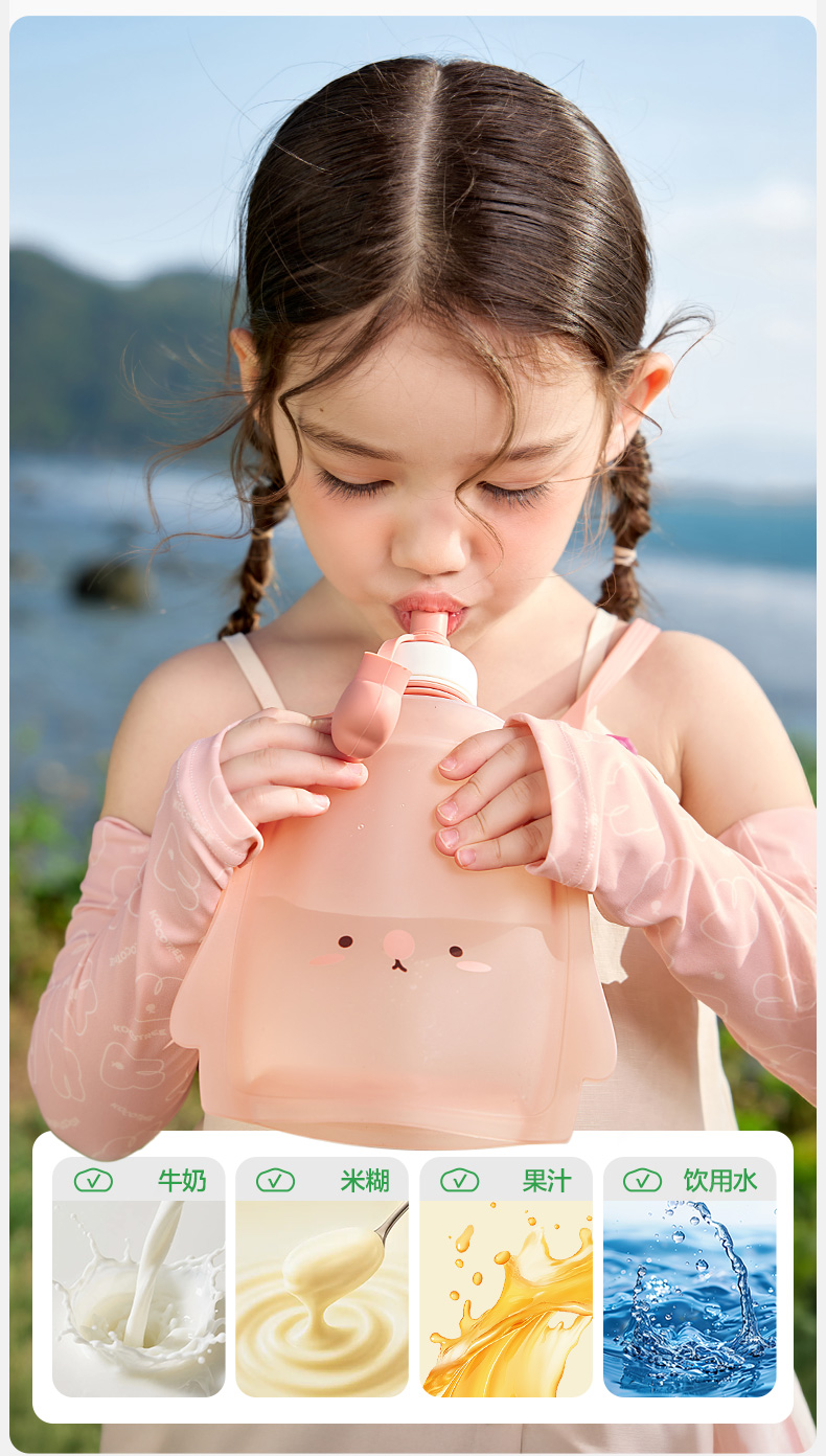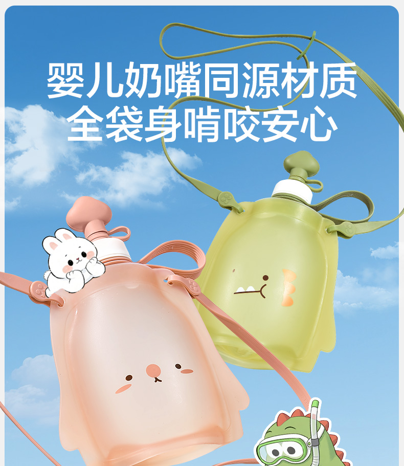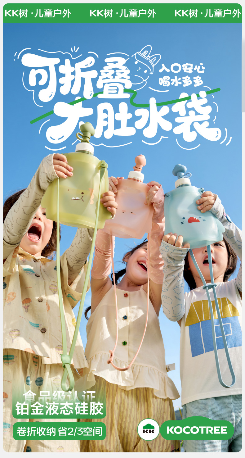 KK树儿童水壶便携食品级宝宝硅胶水袋男童女可折叠轻便外出饮水包圆鼓鼓大肚水袋 (萌宠版)