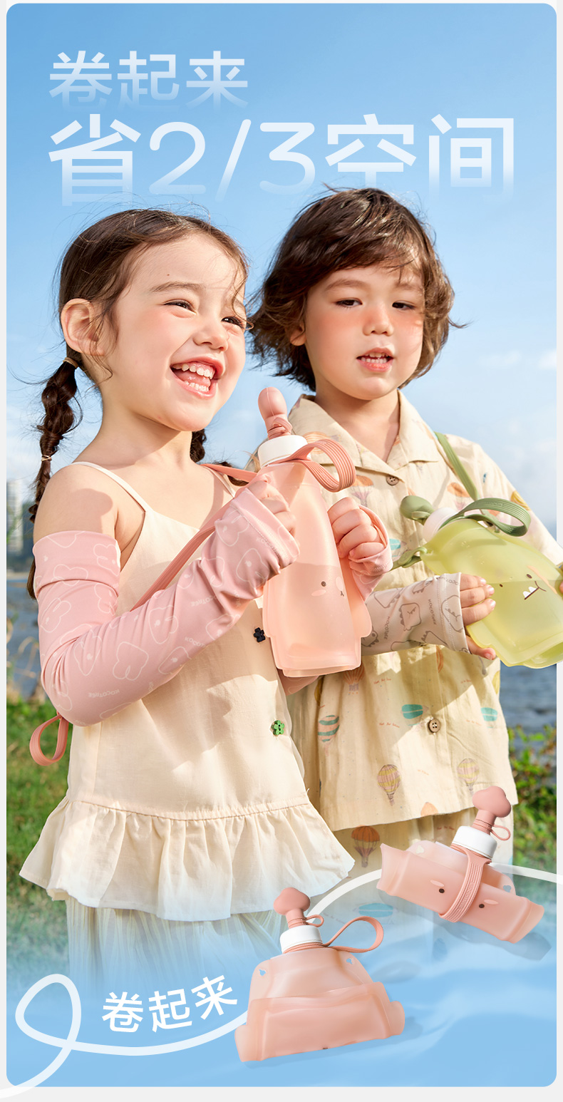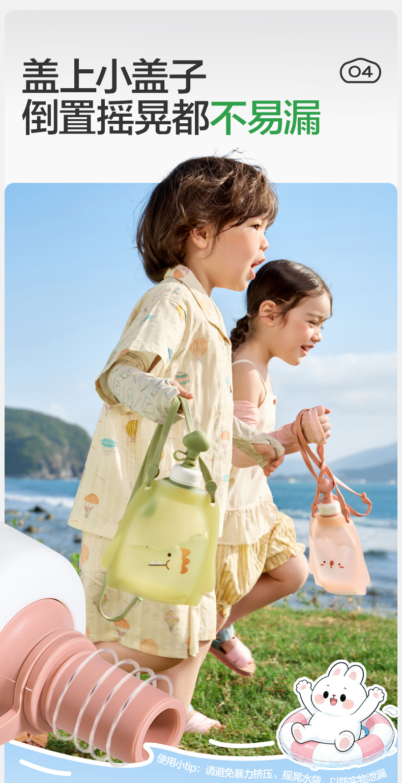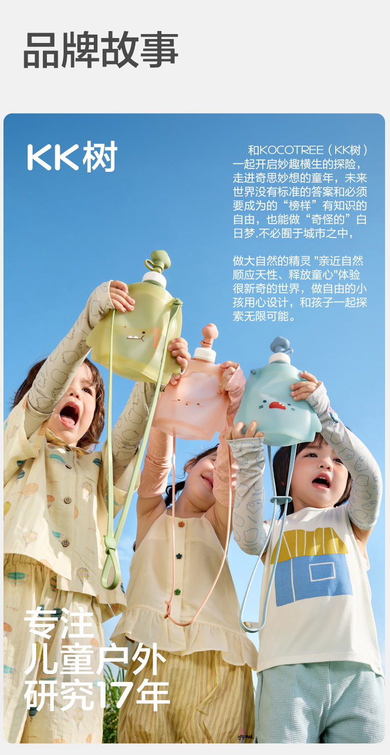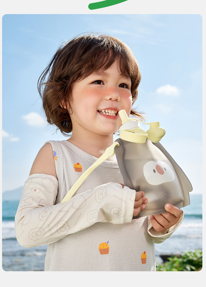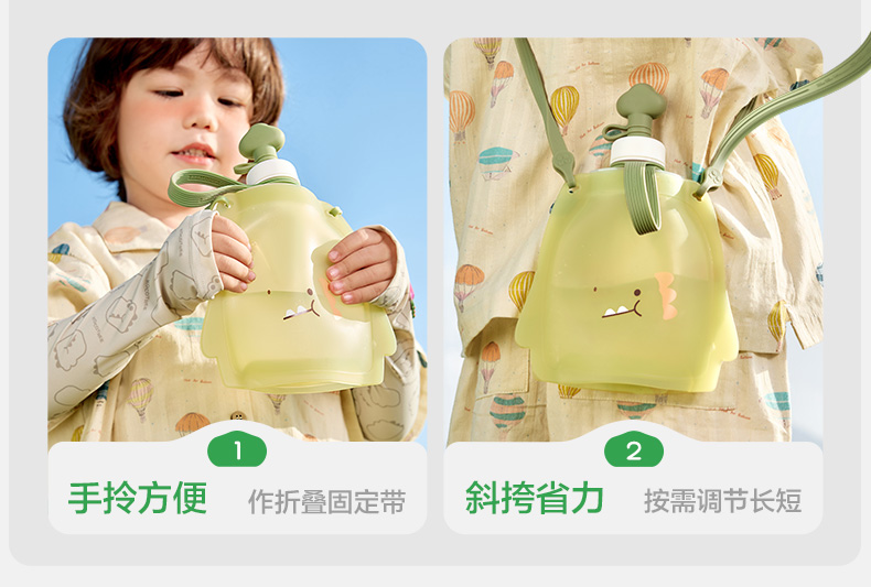 KK树儿童水壶便携食品级宝宝硅胶水袋男童女可折叠轻便外出饮水包圆鼓鼓大肚水袋 (萌宠版)