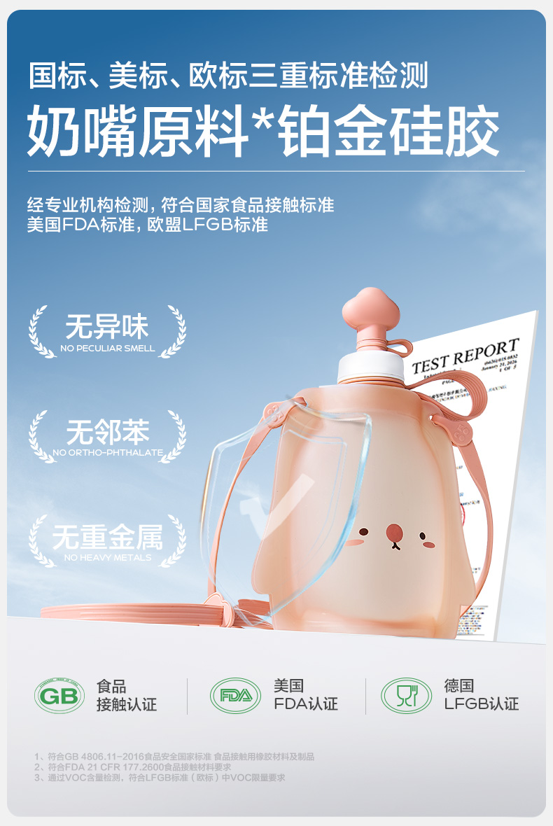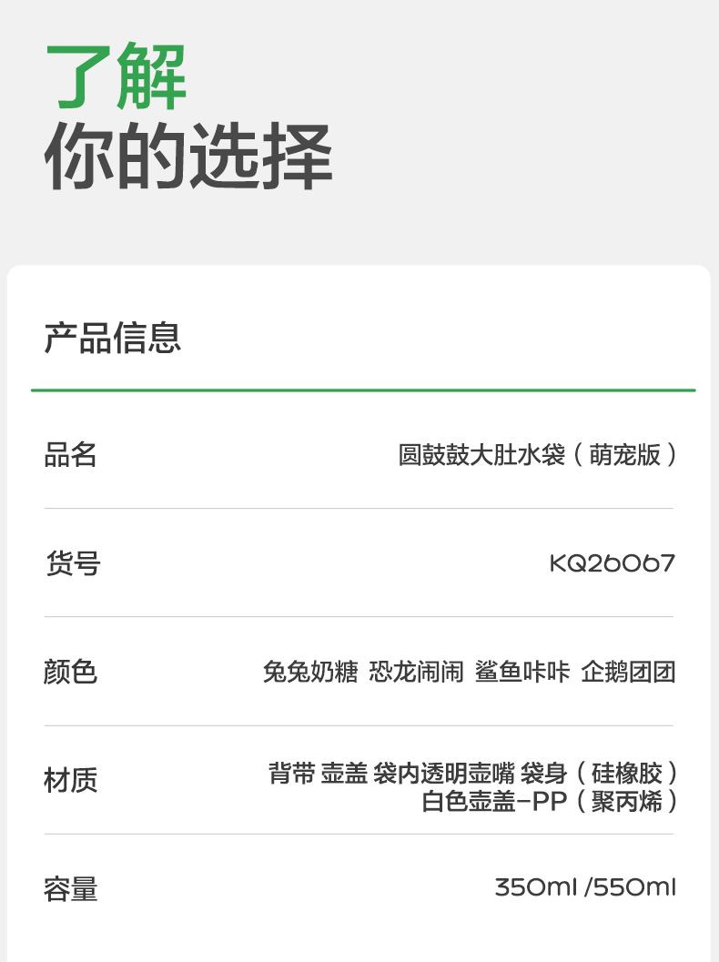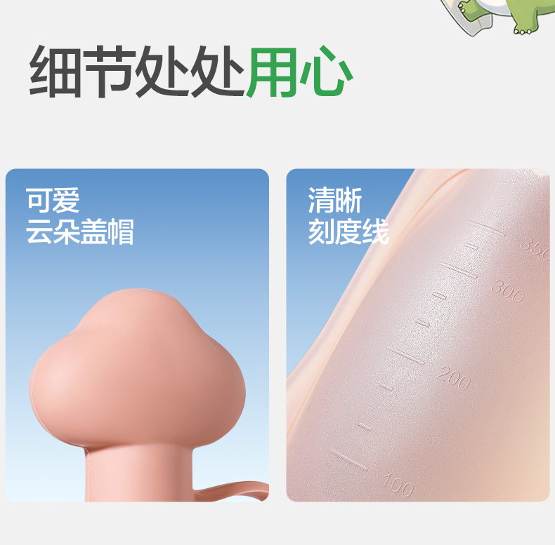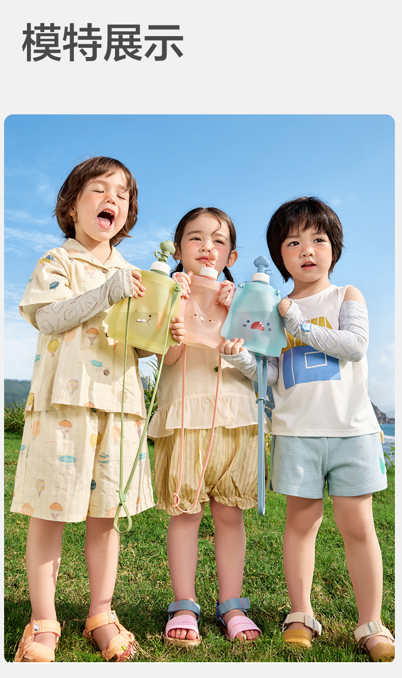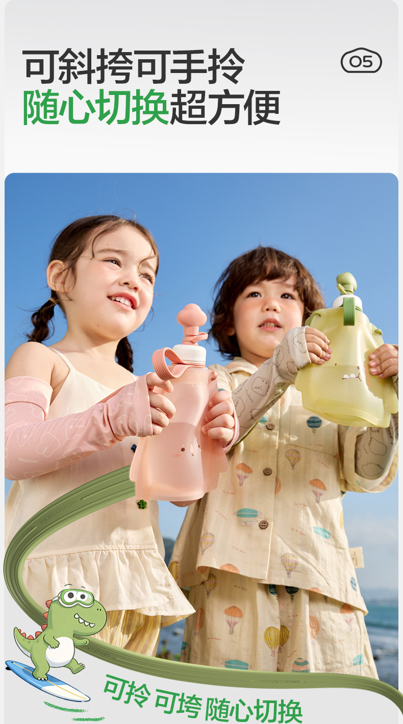 KK树儿童水壶便携食品级宝宝硅胶水袋男童女可折叠轻便外出饮水包圆鼓鼓大肚水袋 (萌宠版)