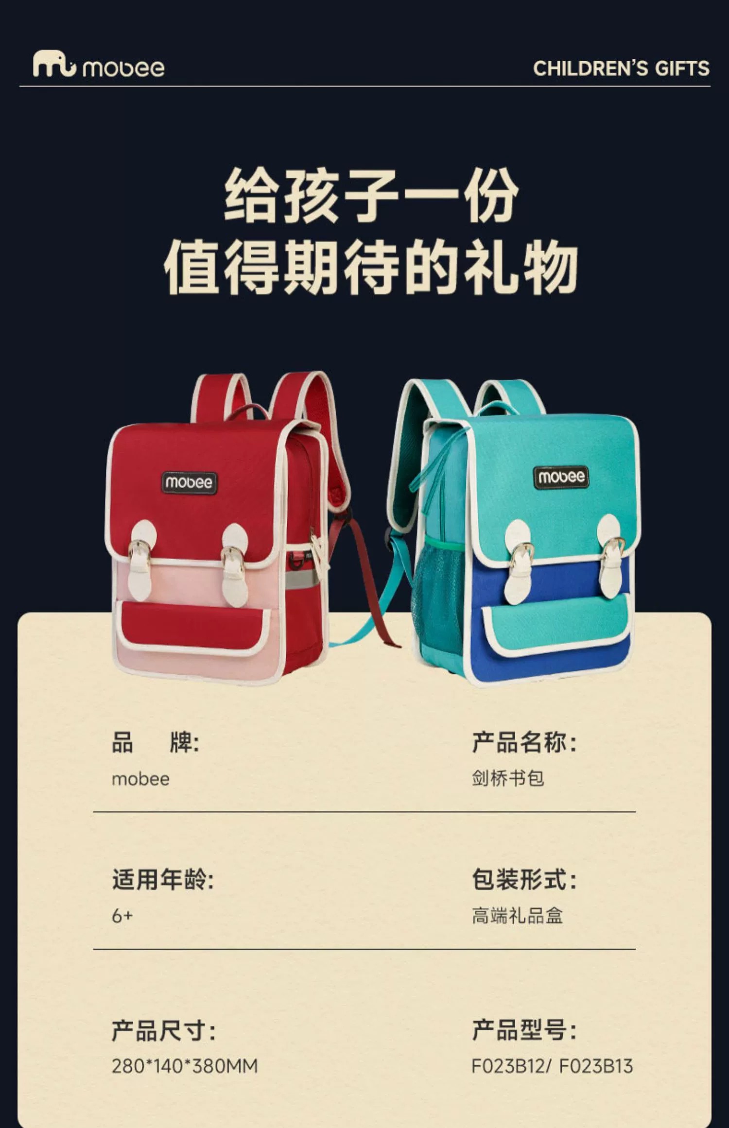 mobee大容量13L小学生chao轻护脊双肩包🎒 轻巧容量大颜值高,防雨防水耐脏实用书包