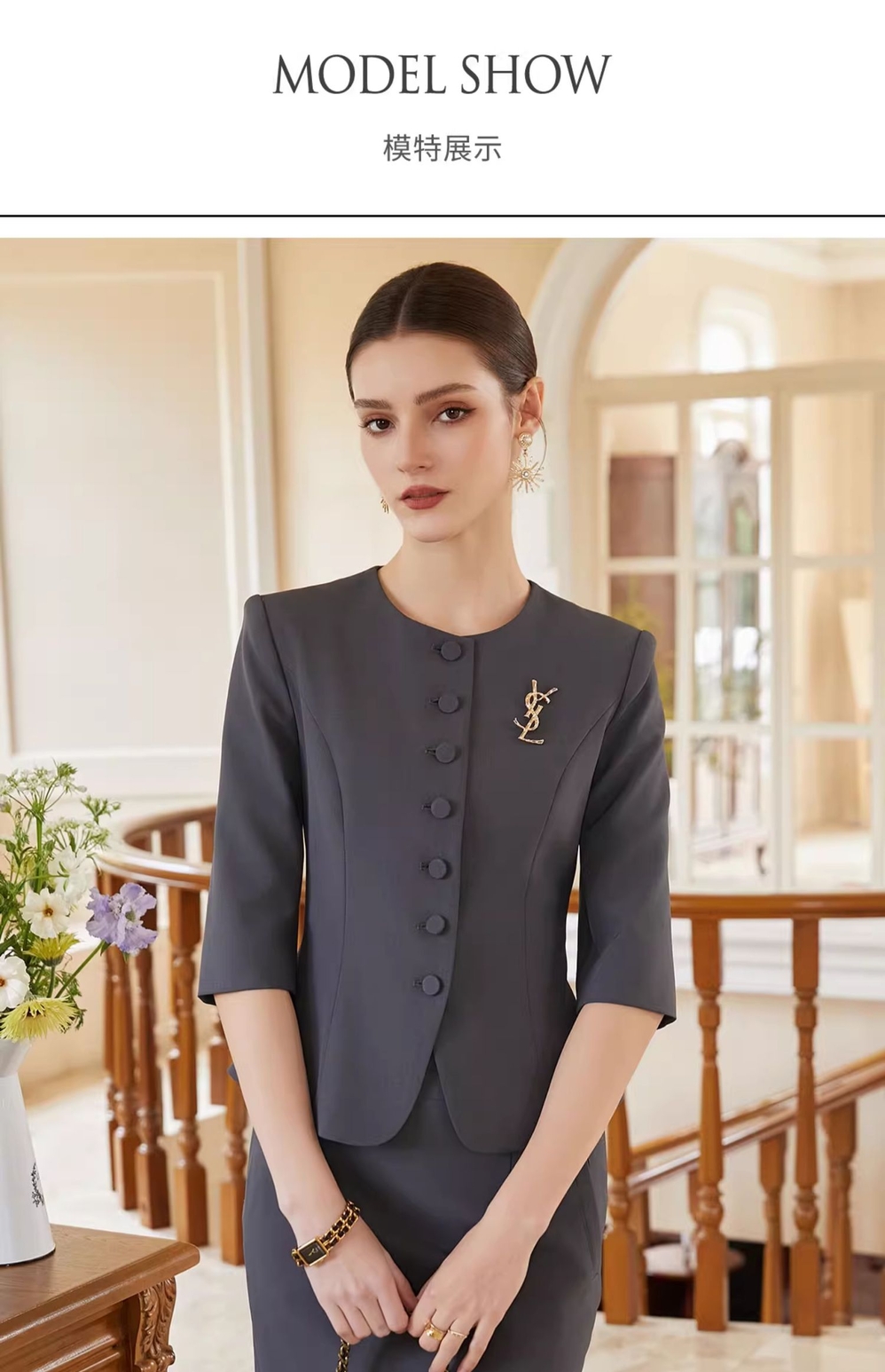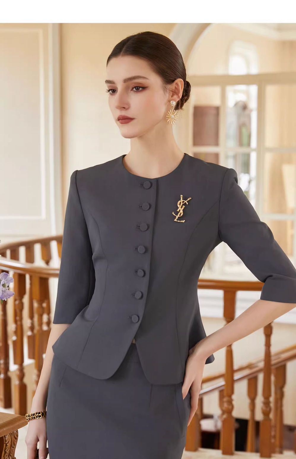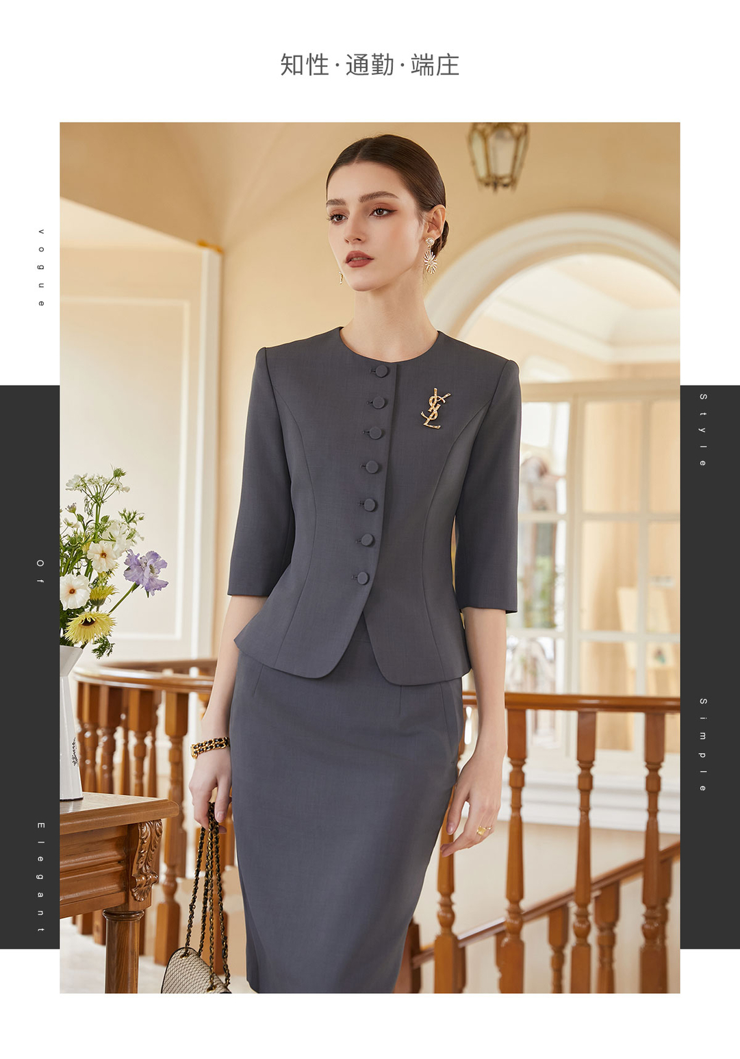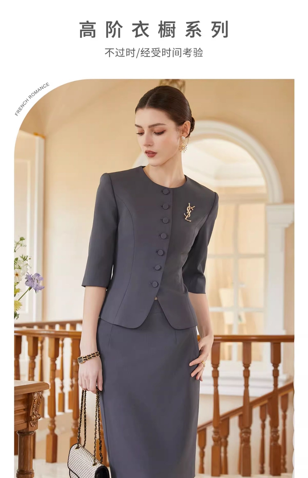 IWY/灰色西装半裙女夏季薄款职业女裙套装夏季酒店接待工作服CS1975