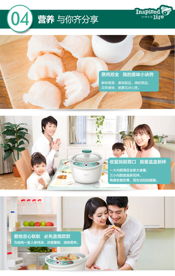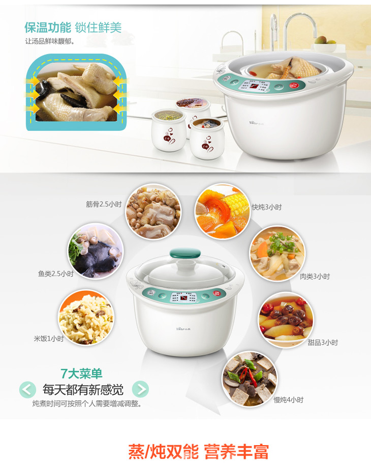 Bear/小熊 DDZ-125TB隔水电炖锅白瓷 预约定时一锅四胆