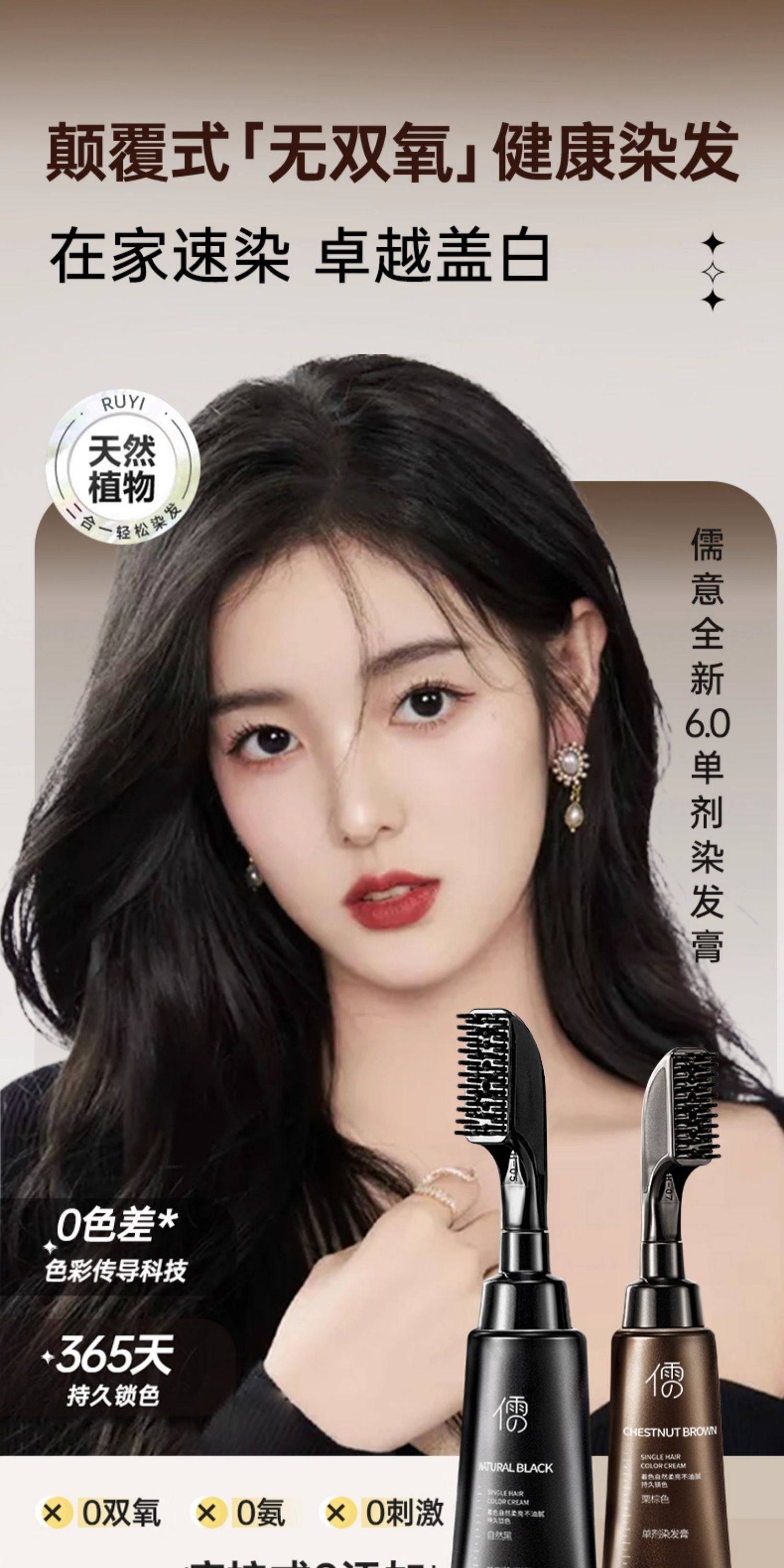 【儒意·单剂染发膏 3大潮色任意选】 0色差、0刺激、0掉色 自带染发梳 一挤一梳 在家30分钟搞定染发 80ml/支