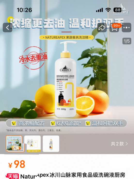 🦋多种清洁需求一瓶搞定!🎁 39.9带走2大瓶【冰川山脉果蔬餐具洗洁精】,🌻高浓缩配方,冷水就能去重油,🉑一冲快速带走油渍 ,宝宝奶瓶都能用它!
