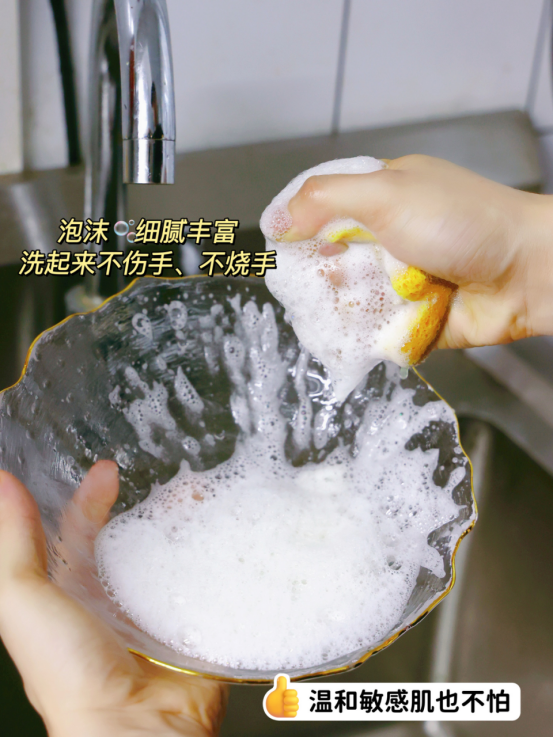另外,洗洁精是否伤手,也是看表活成分 一些劣质的洗洁精为了清洁力会添加化学的表活 对手部肌肤会有一定刺激性 洗碗后常常是手部干痒刺挠,严重的还会过敏 而这样天然来源的用起来不用担心伤手 更别说还贴心地添加了护手成分VE 用后手不干不紧绷,告别家务带来的皮肤伤害!