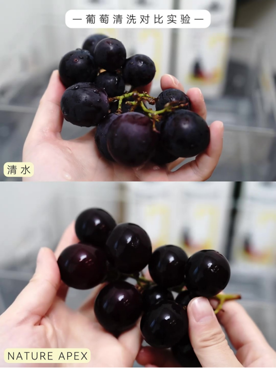 ▲99.9%除菌·洗去果蔬农残 葡萄、蓝莓、西兰花这些外皮有蜡的水果蔬菜 还有果蔬表皮的农残,只用清水是没法洗净的 这时候只要来上几滴NATUREAPEX 简单的浸泡冲洗 不仅做到99.9%的除菌还可以有效去除农残 既保障入口的食品安全 也无需担心化学剂的残留 可以放心大胆地“吃葡萄不吐葡萄皮”