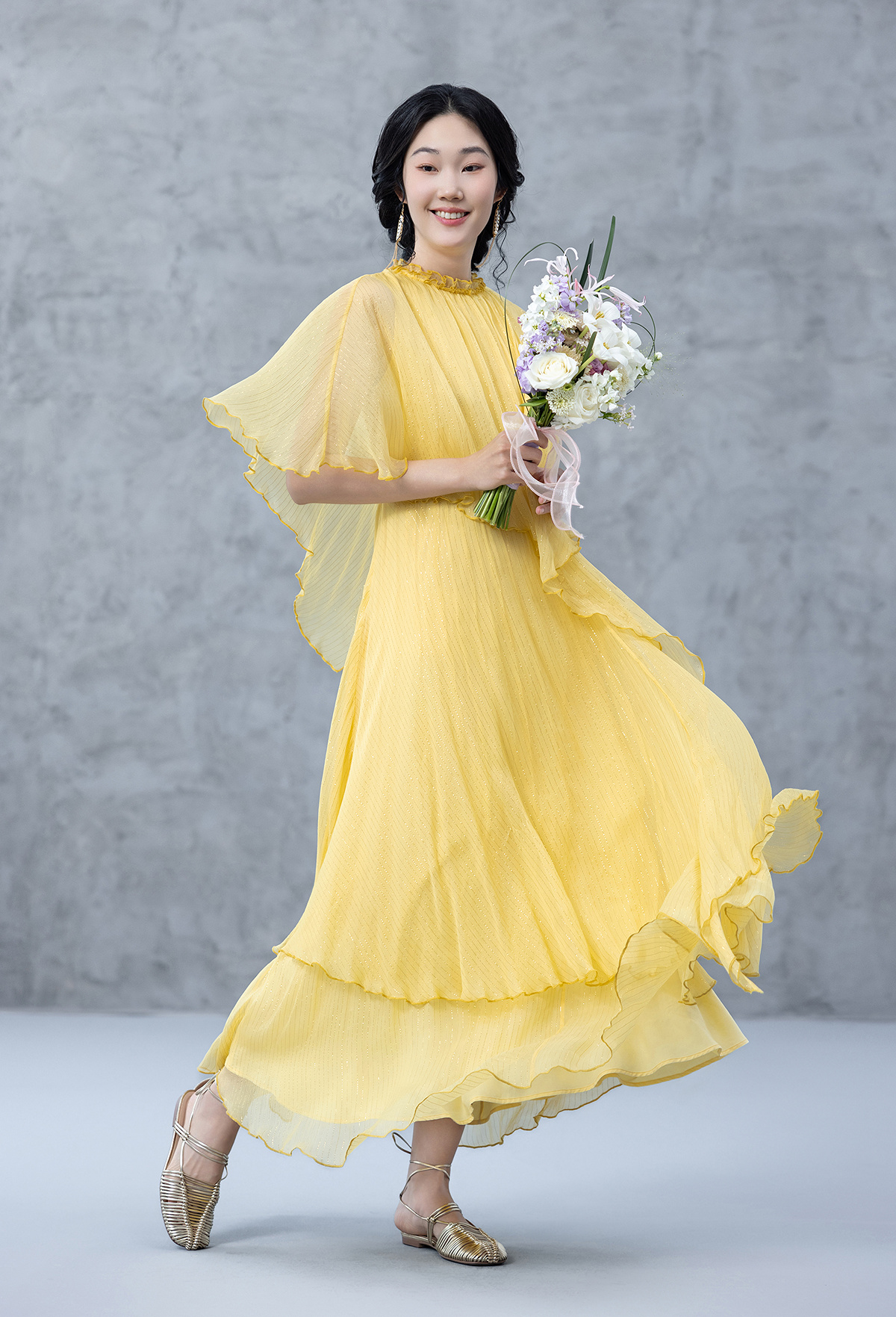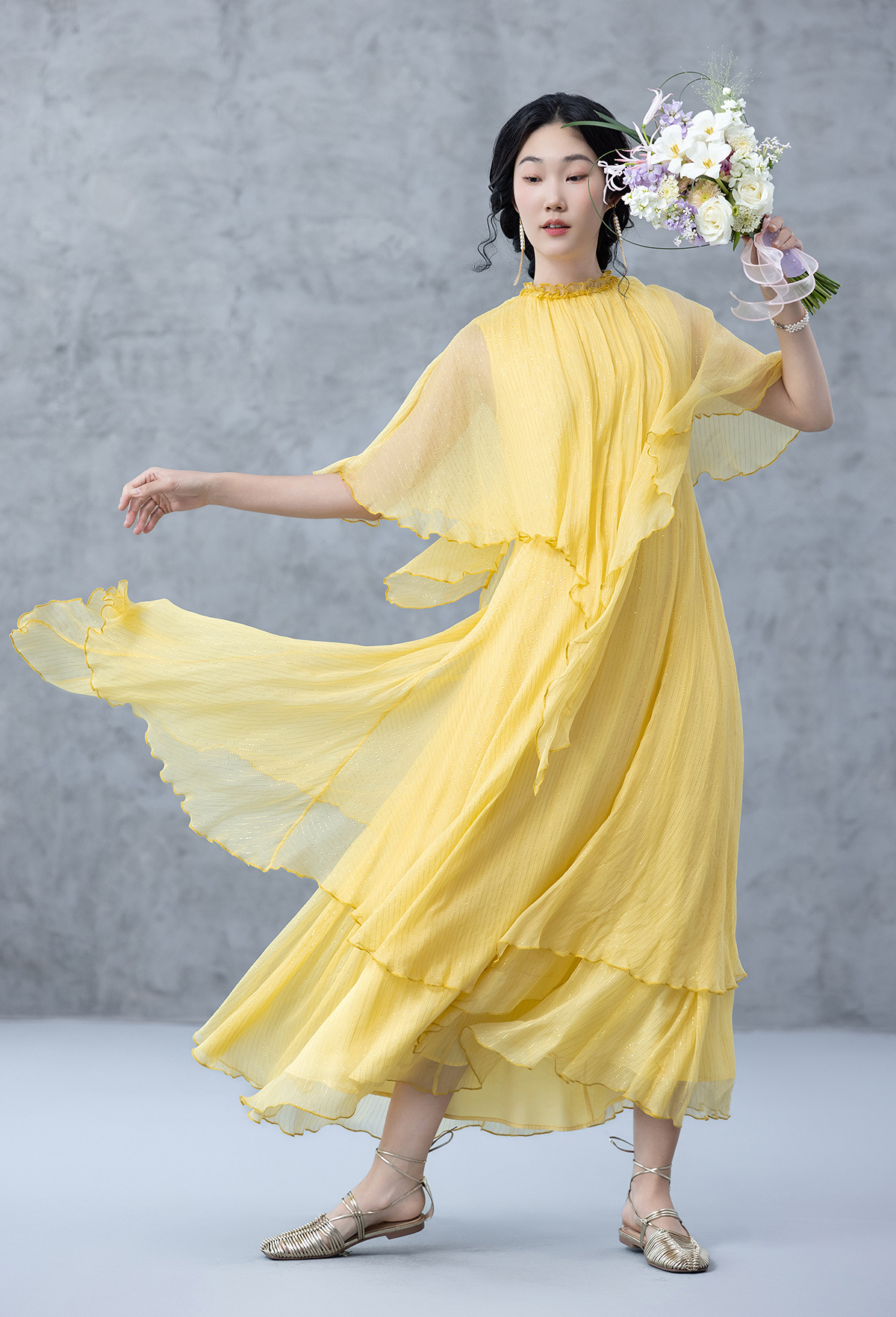 【林栖设计小店】桑蚕丝混纺连衣裙复古优雅气质2025春夏新品花仙子长裙女1952046
