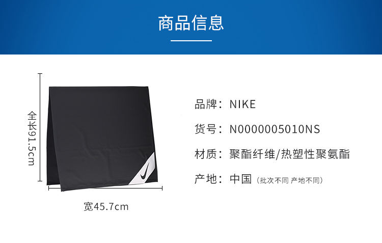 NIKE耐克COOLING足球运动冷感毛巾男N0000005010