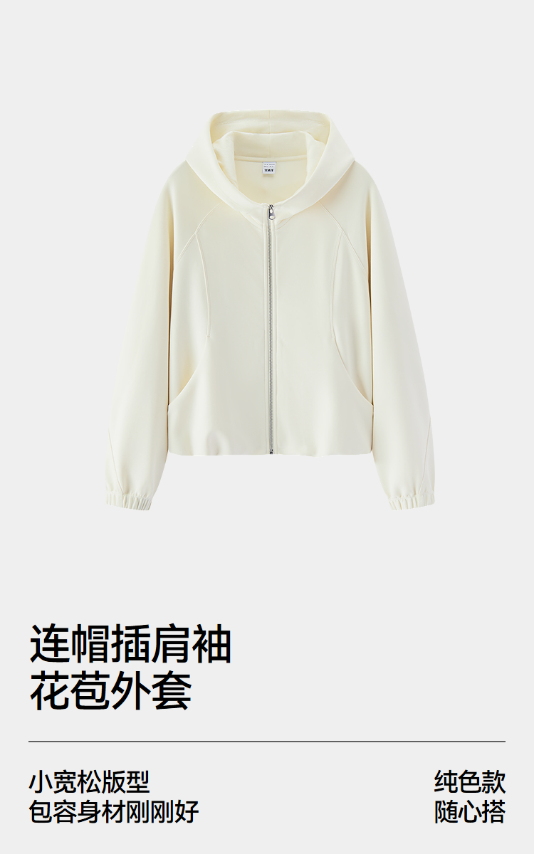 商场同款|森马外套女春插肩袖连帽花苞2026新款休闲百搭气质夹克