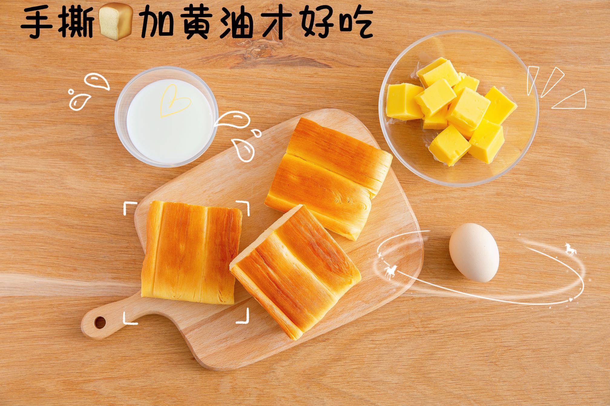 新鲜蛋液,制出柔软嫩滑的手撕面包🤗