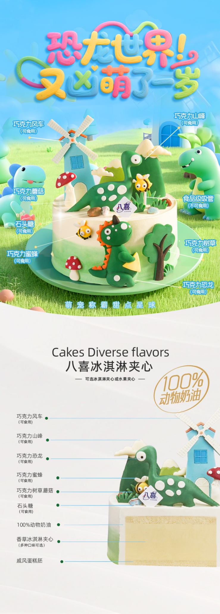 ⭐【恐龙世界】冰淇淋/水果生日蛋糕
