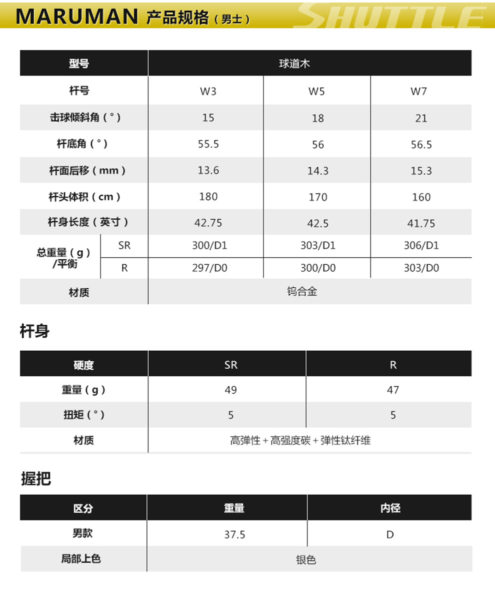 Maruman Shuttle 高尔夫球杆套杆 男士钛合金全套 750轻钢杆身 稳定性好