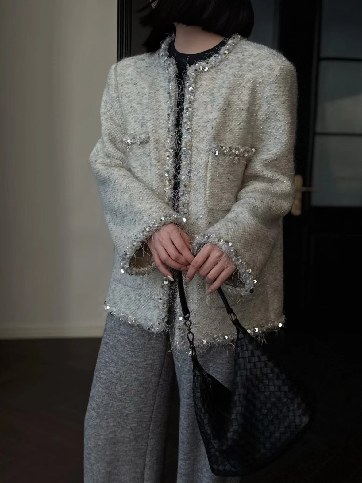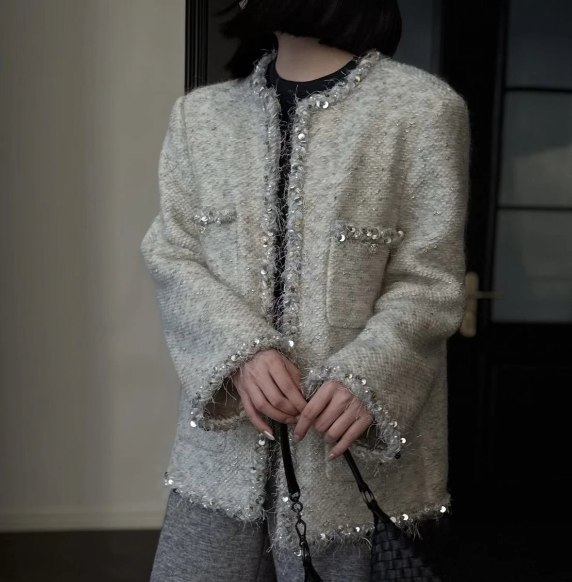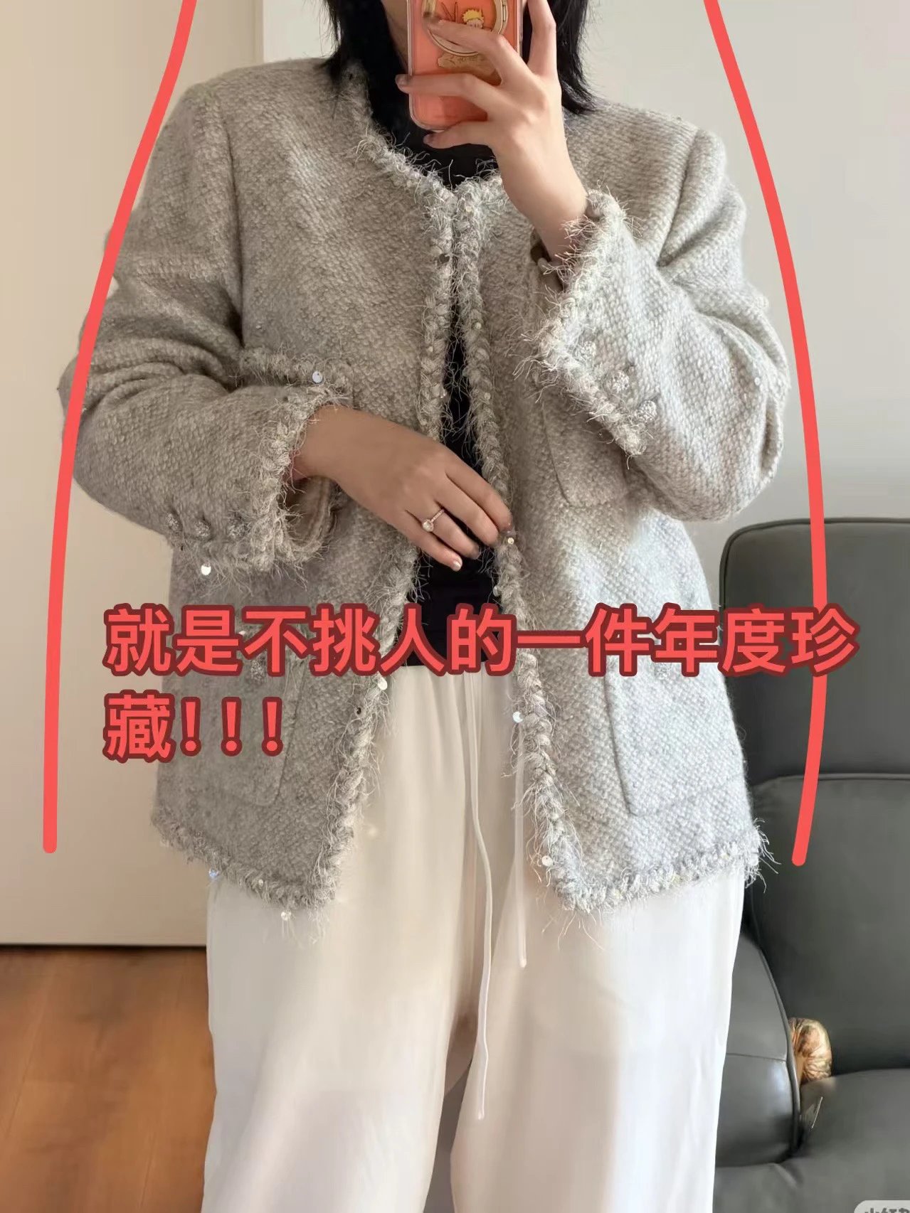 年度重磅 moessmer鱼鳞粗话呢 宽松廓形香风夹克外套 实际库存!无补货!