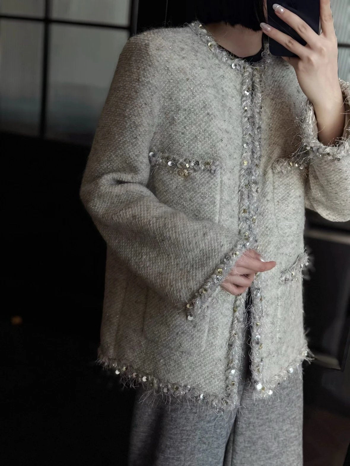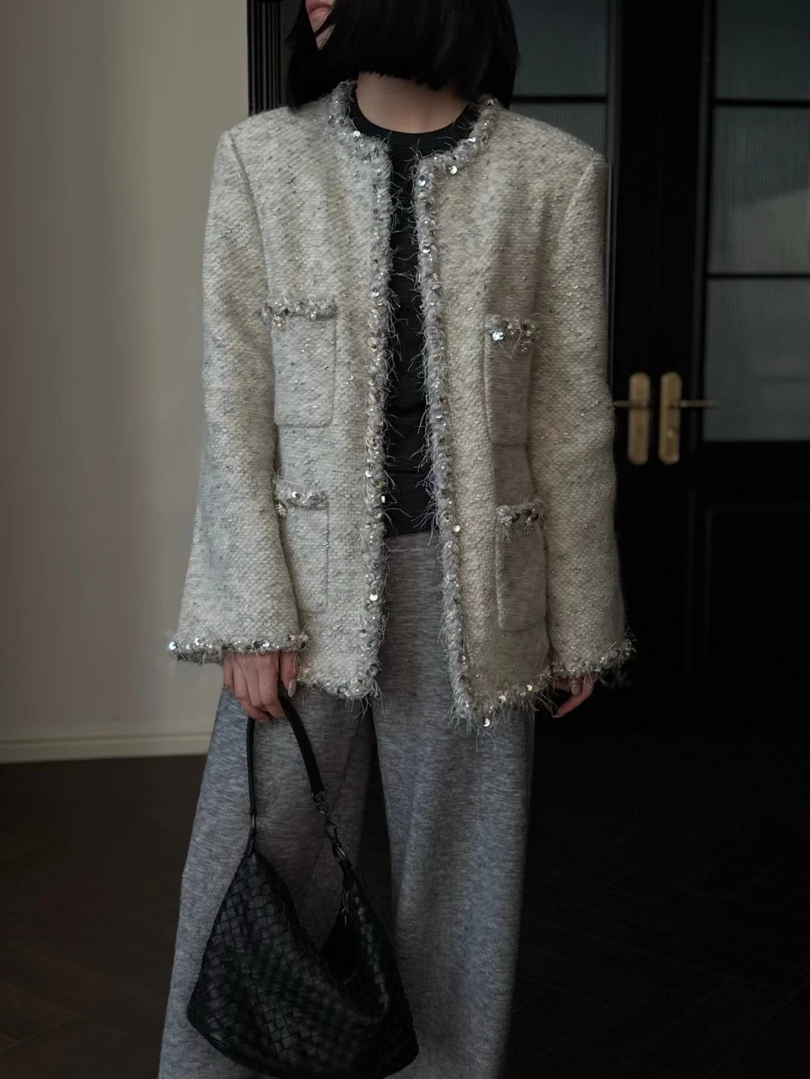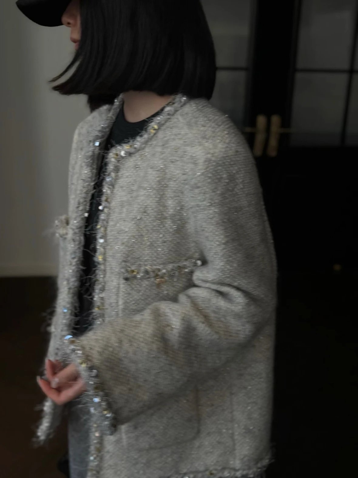 年度重磅 moessmer鱼鳞粗话呢 宽松廓形香风夹克外套 实际库存!无补货!