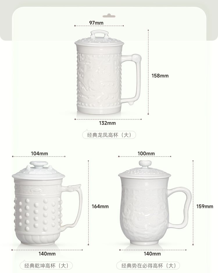 乾唐轩活瓷经典白瓷大容量高杯 580ml/620ml