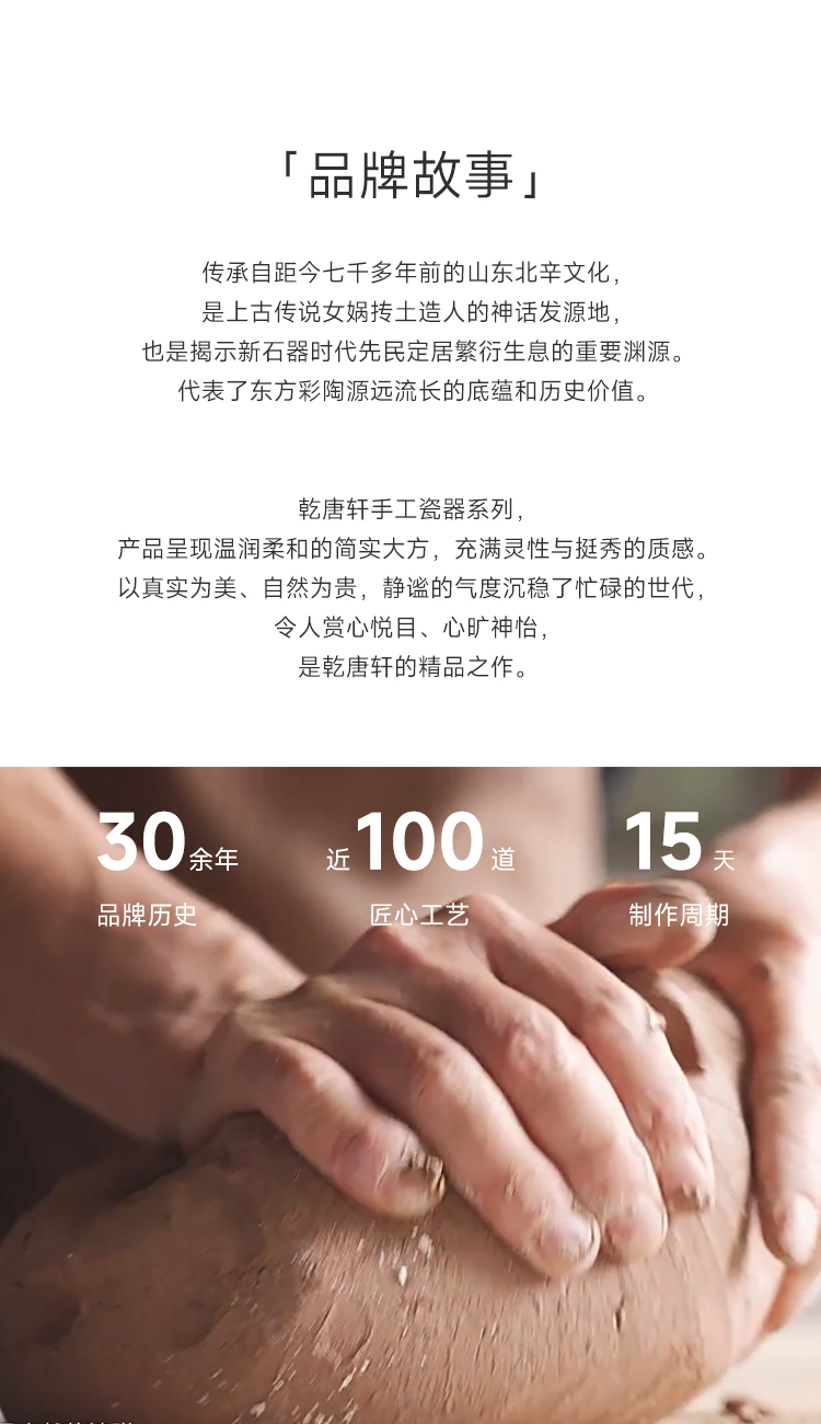 - 乾唐轩创立于1986年, 它以艺术融入生活美学,把传统陶瓷结合现代科技,以创造人类健康美好的生活为标志
