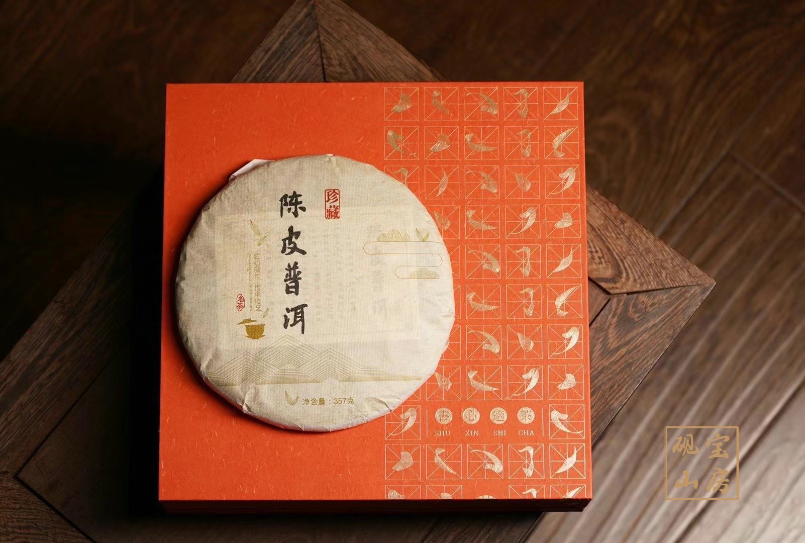 我们这款茶2018年的普洱,十年的新会陈皮,砚宝山房的茶我希望大家可以自己喝。反正也没有什么量,如果你是刚开始自己想喝茶或者是新手入门喝茶,