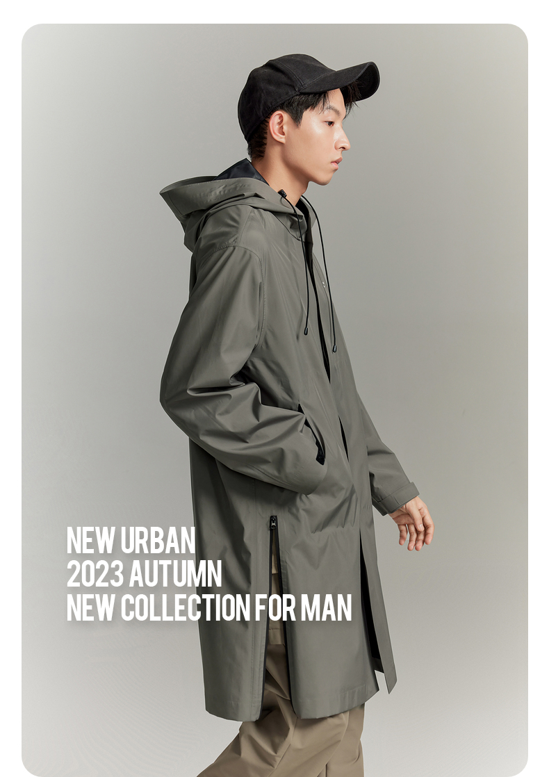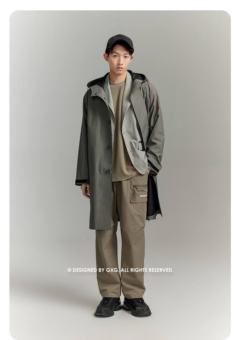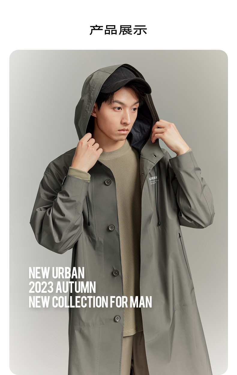 GXG男装 城市探索深灰色户外简约三防连帽风衣 秋季热卖