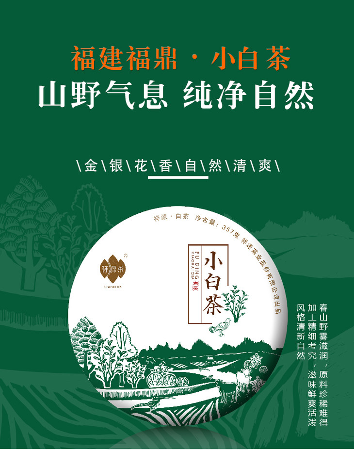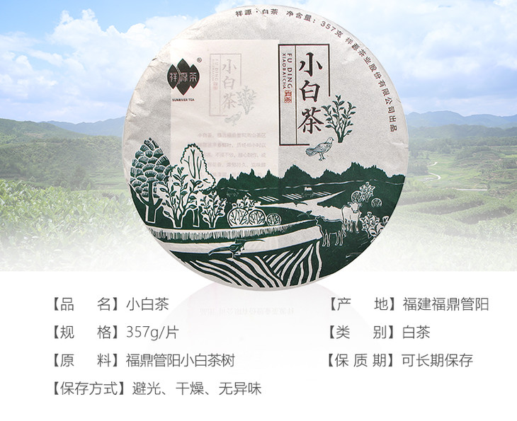 祥源茶 小白茶 福鼎白茶 白牡丹 茶饼357g