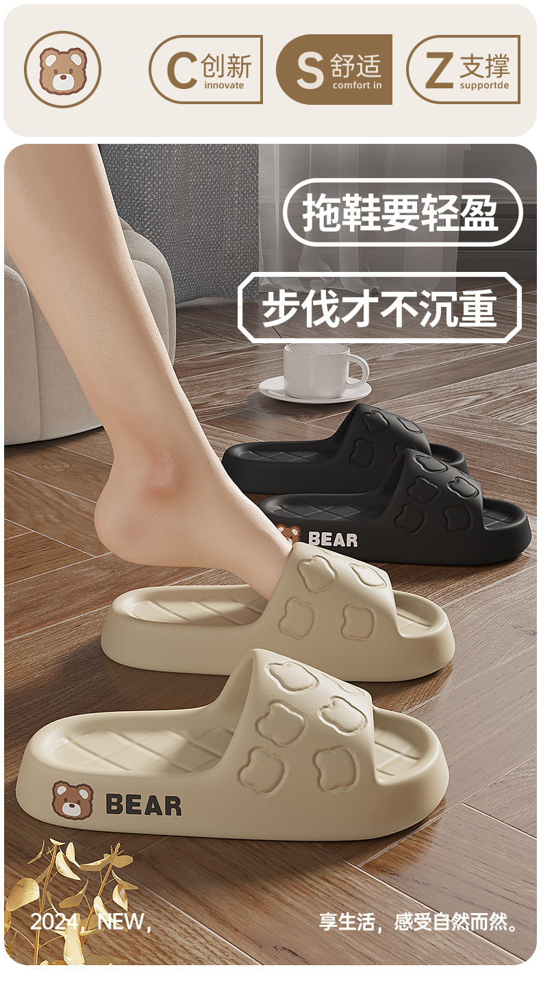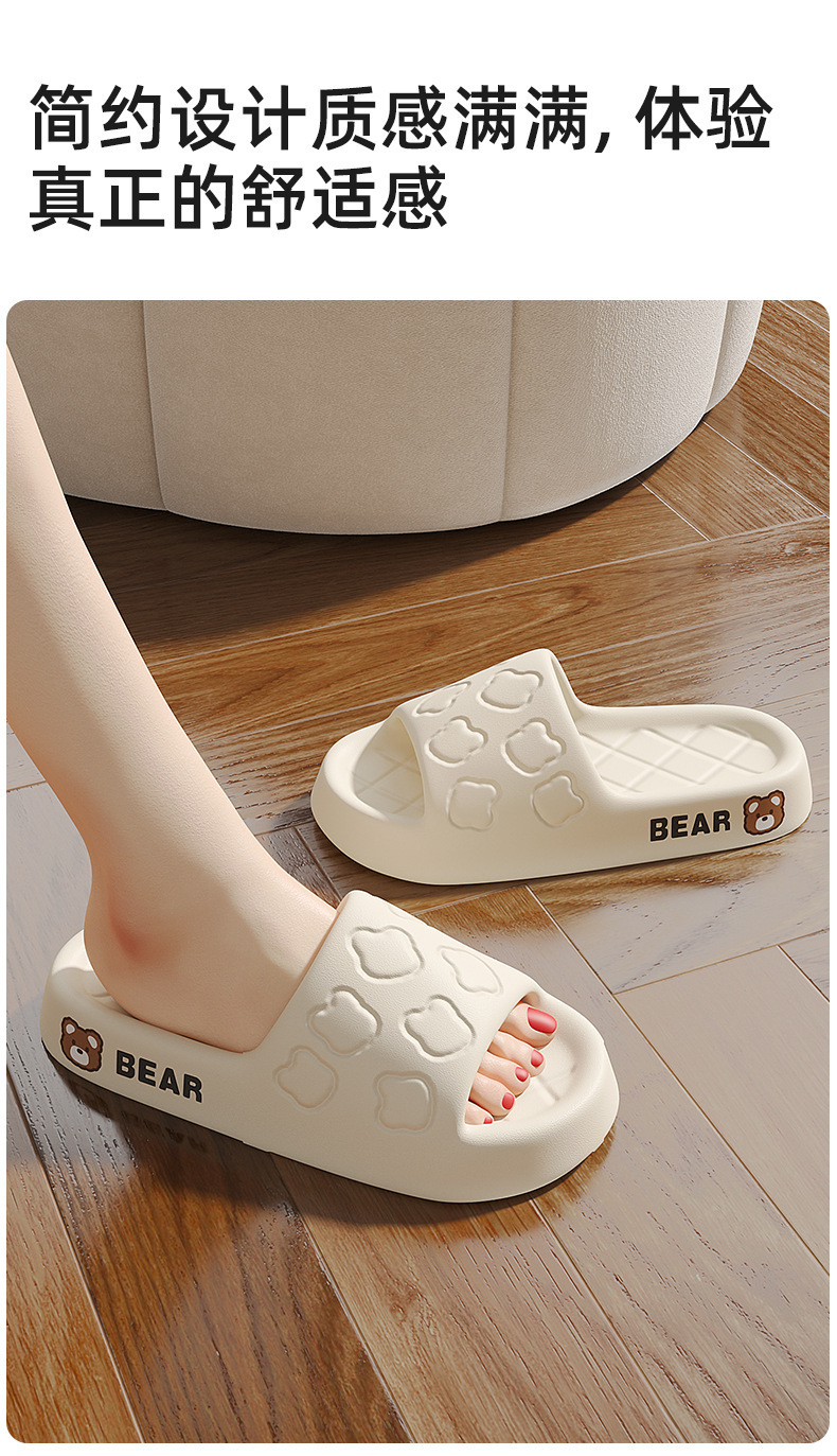 「9.9元包邮!男女同款」新款小熊厚底拖鞋 女2024夏季防滑软底情侣室内家居踩屎感拖鞋女士