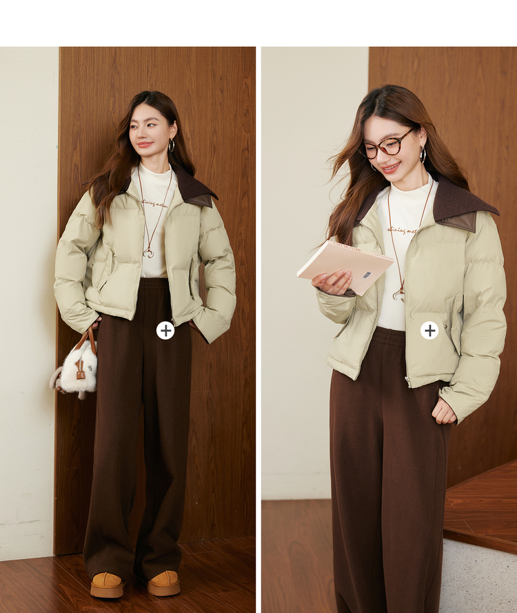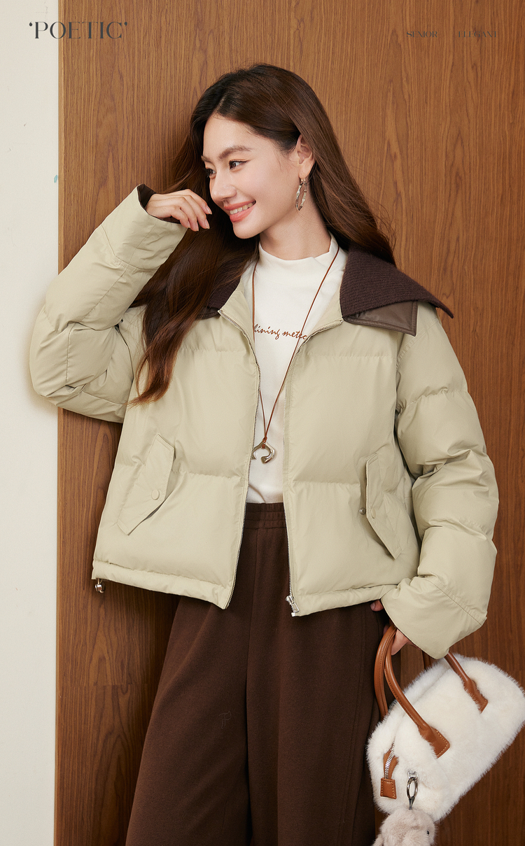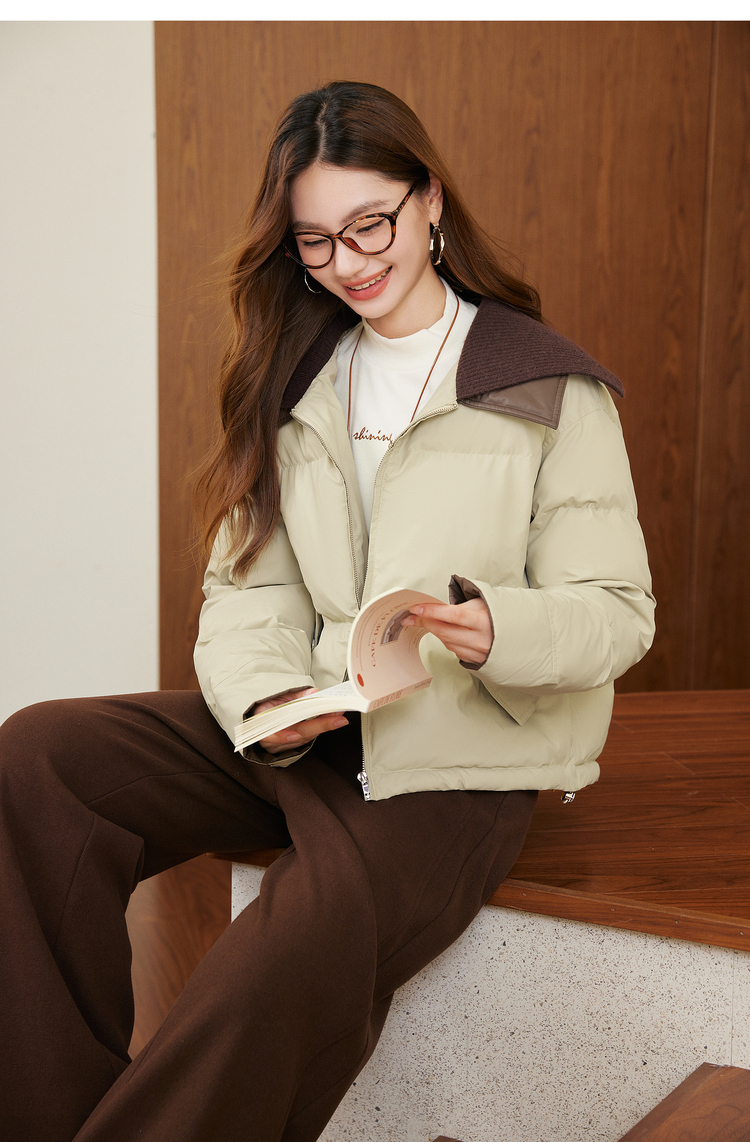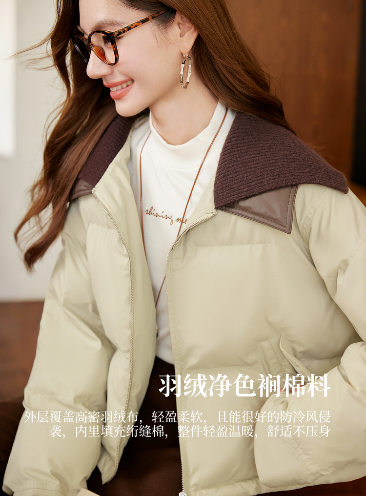 【年货节】熙世界巴恩风针织翻领棉服厚外套女小个子短款棉衣2025年新款冬装