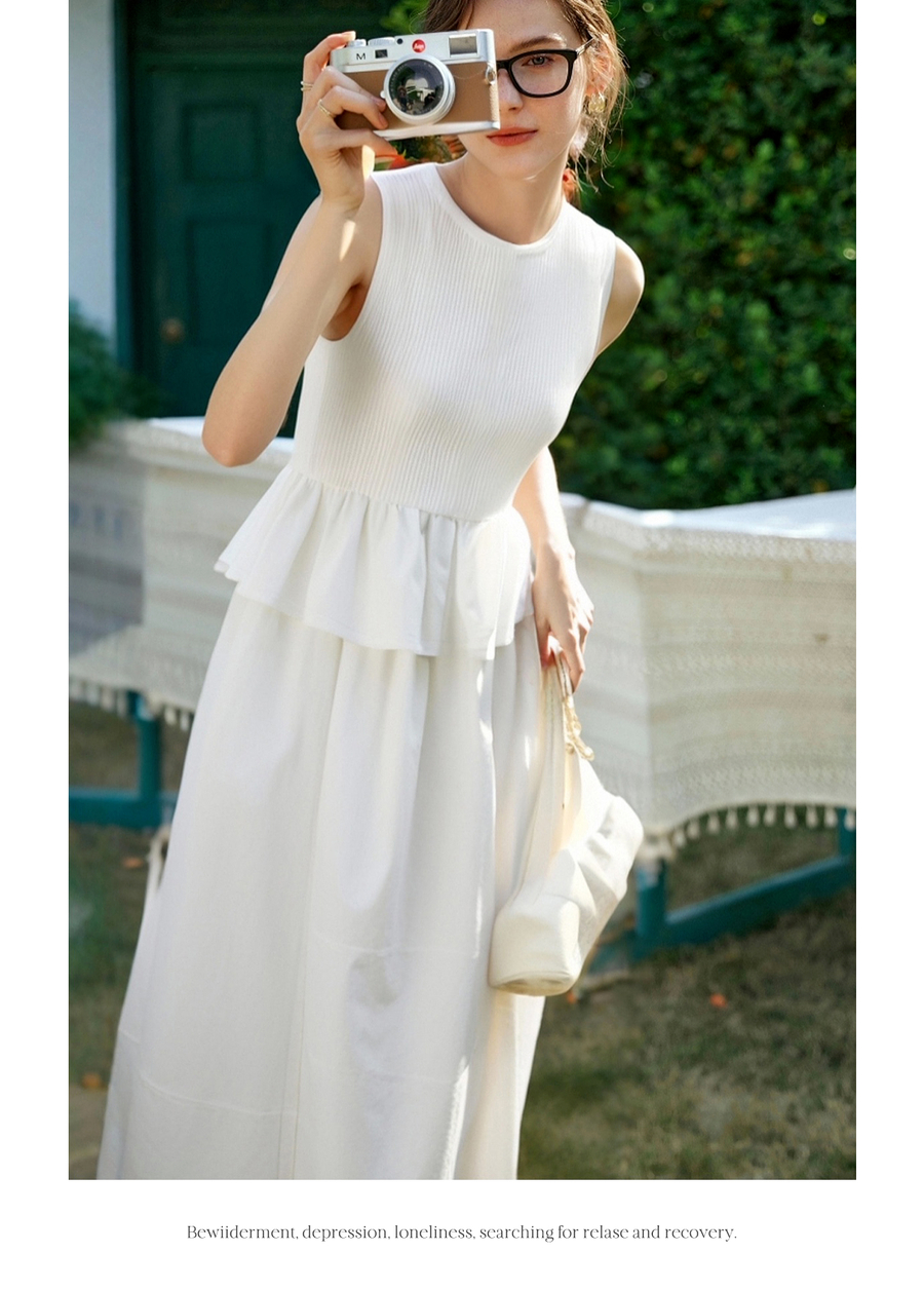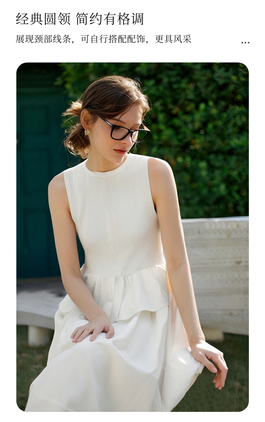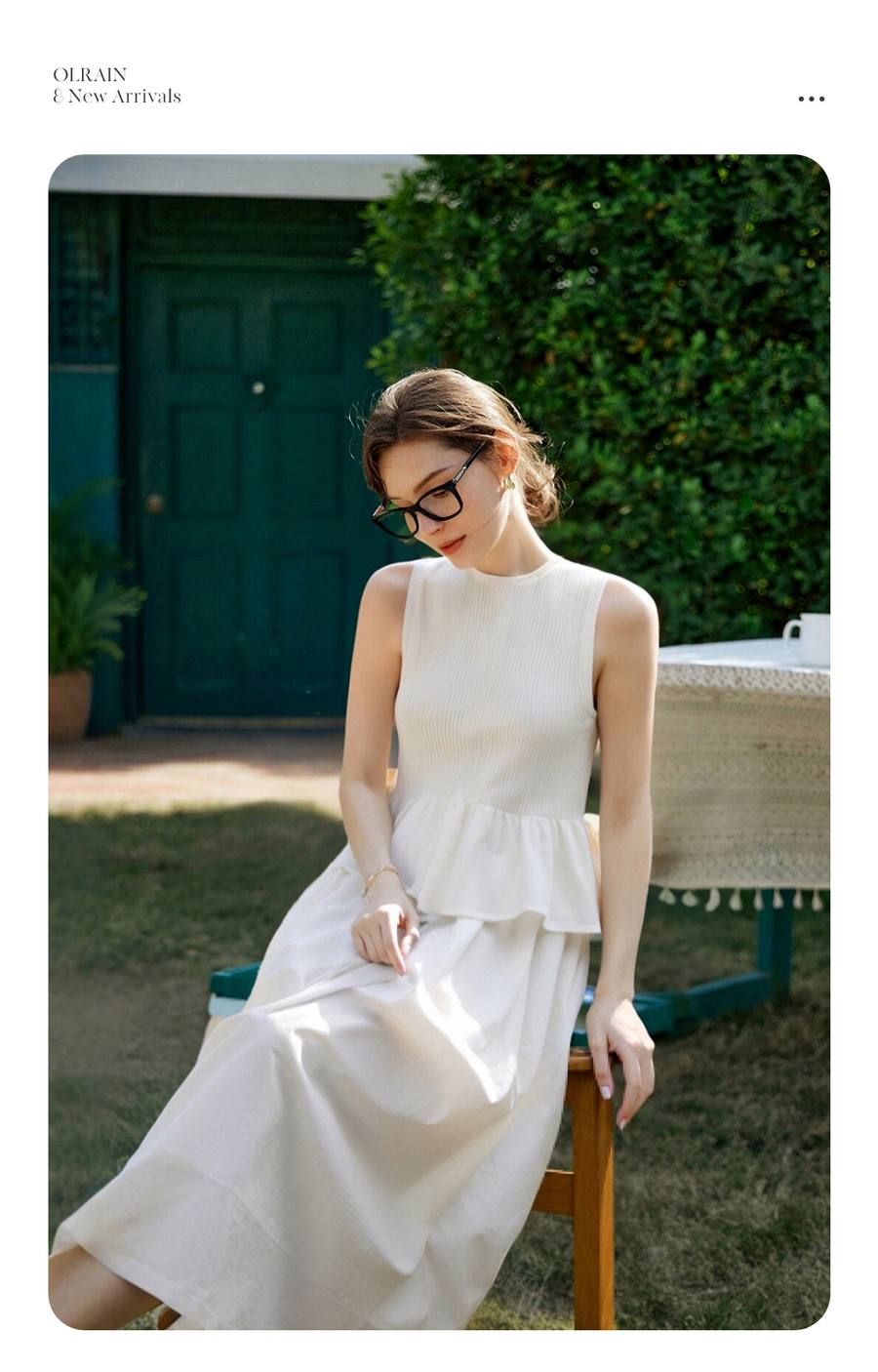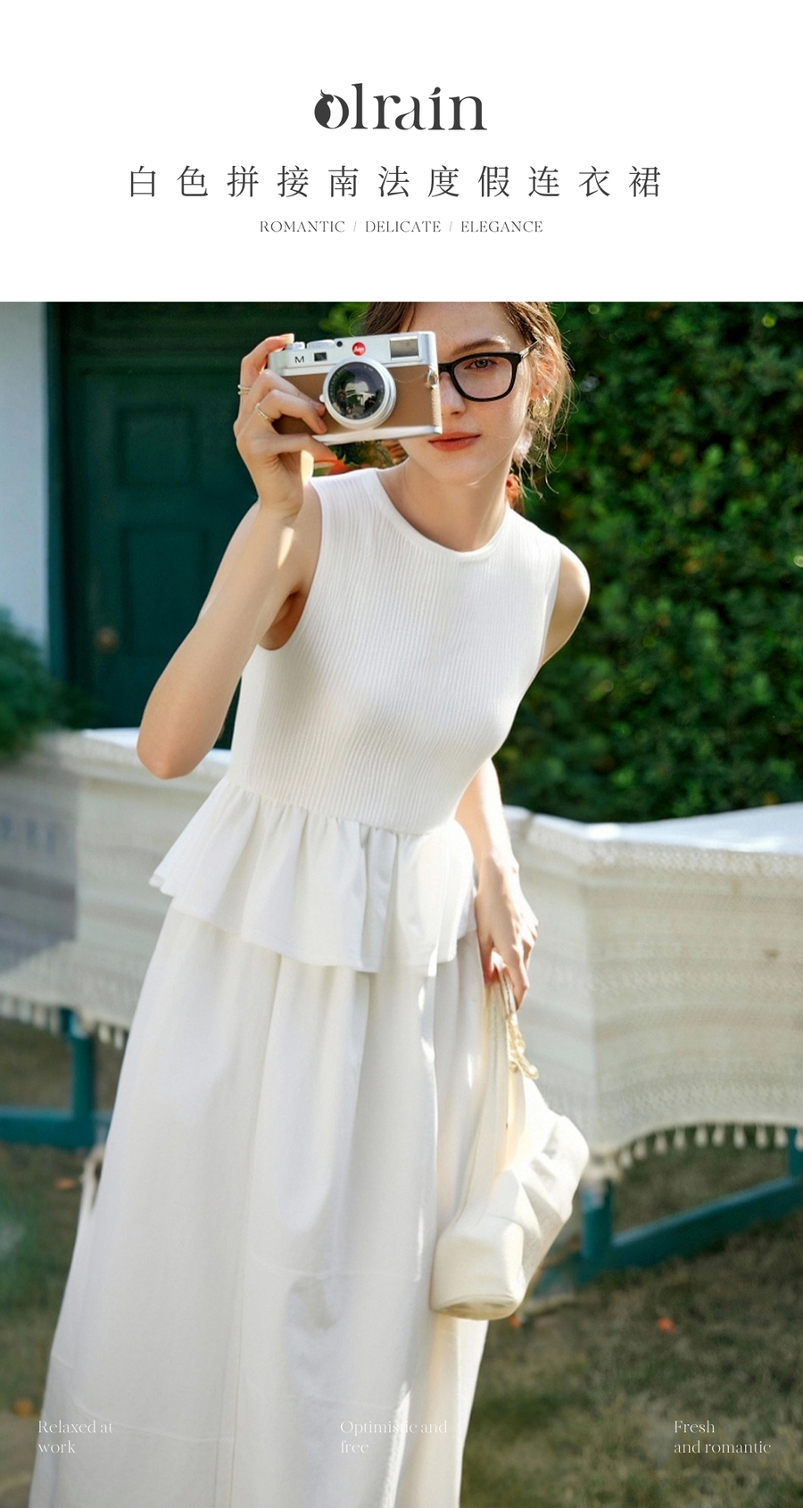 OLrain欧芮儿白色拼接南法度假连衣裙女夏季2025新款显瘦大摆裙