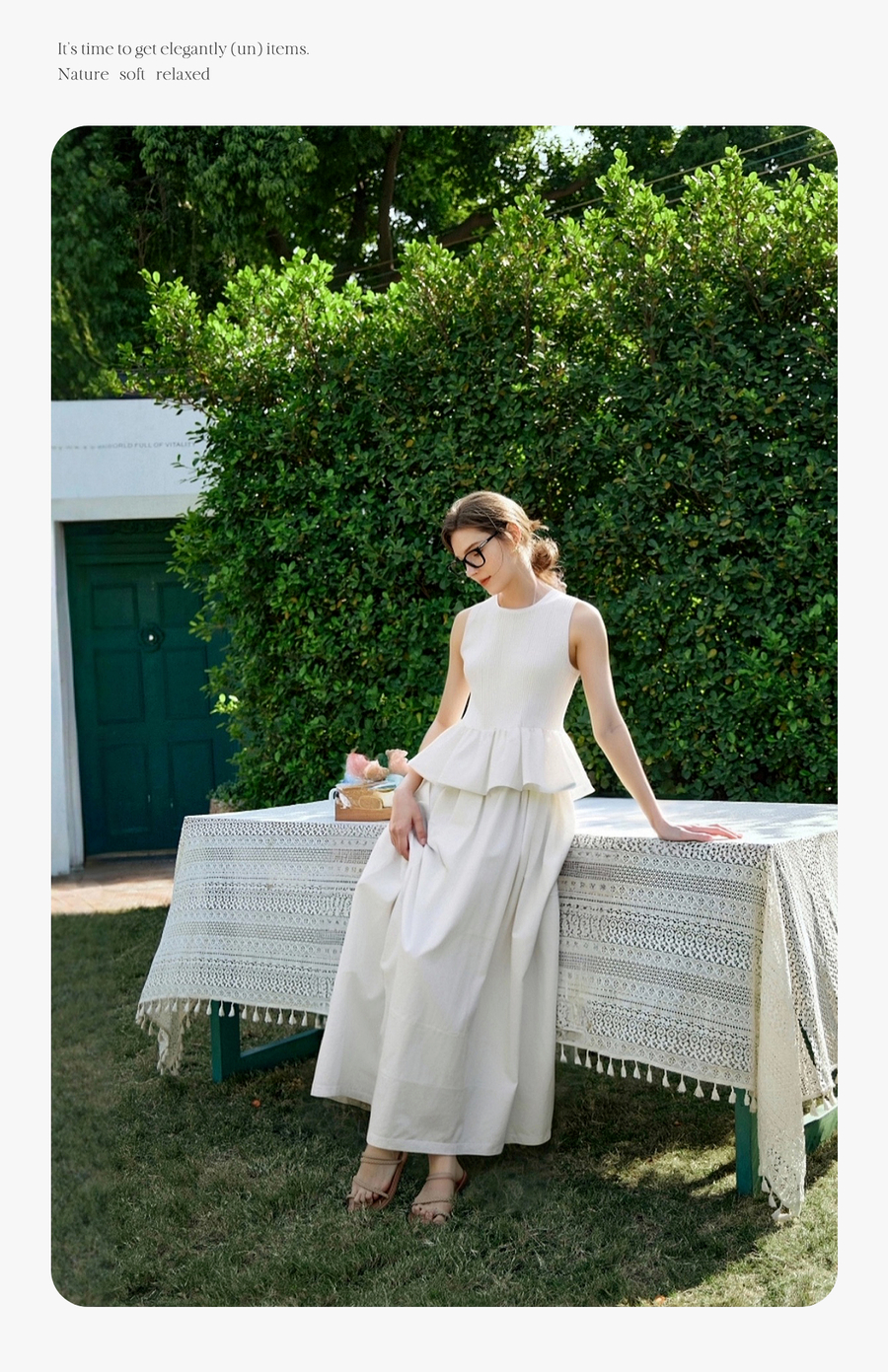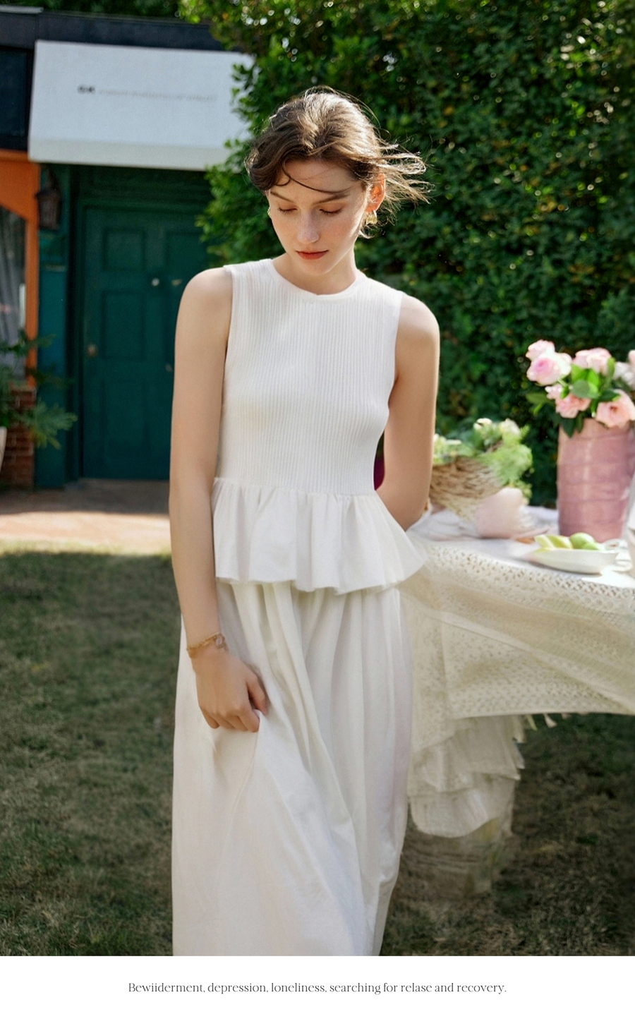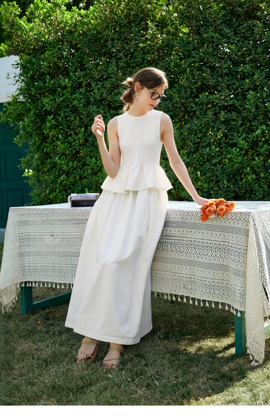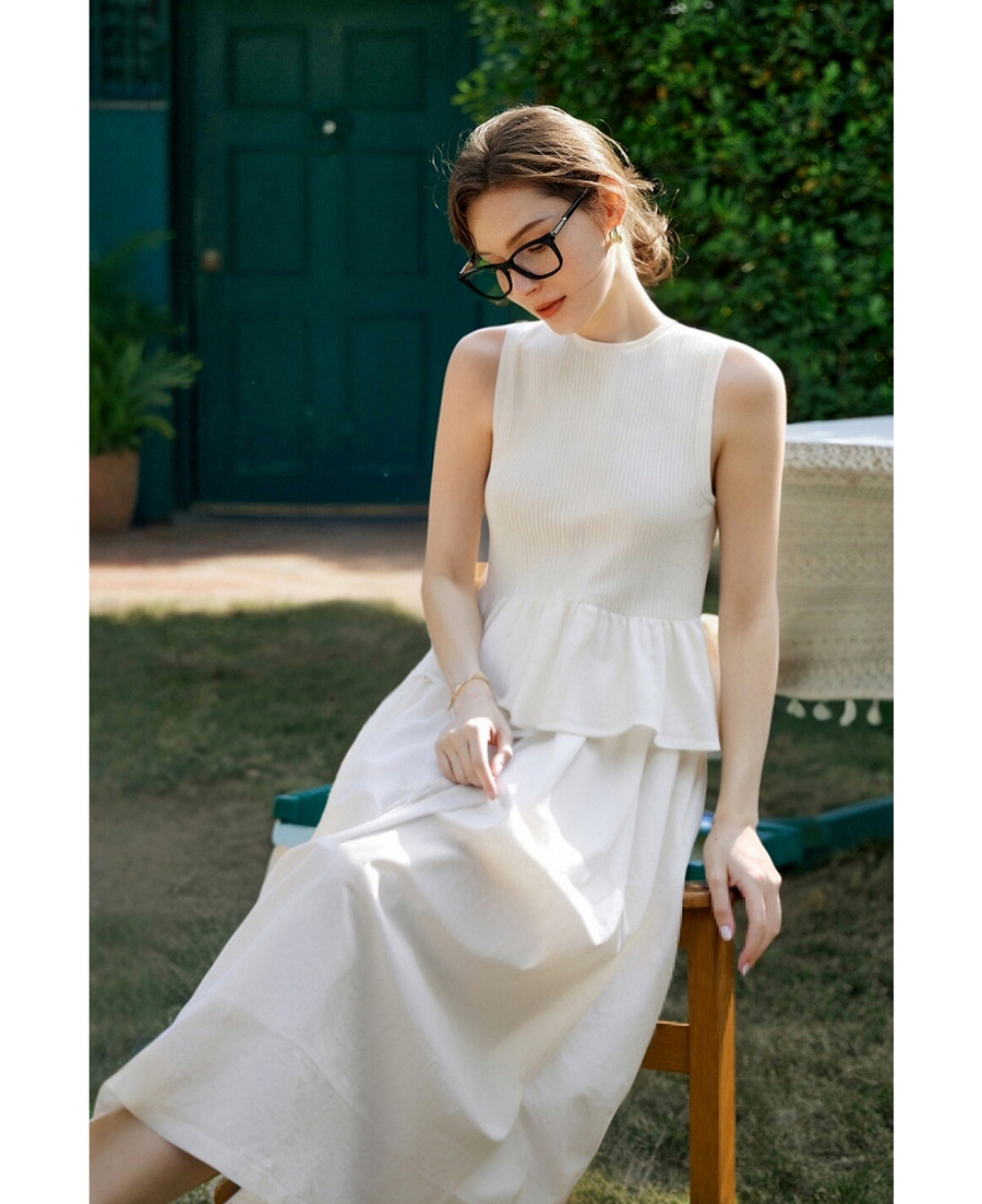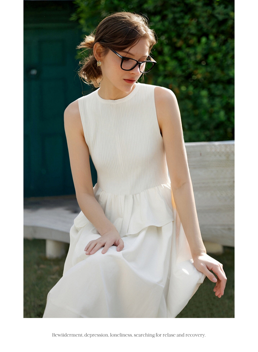 OLrain欧芮儿白色拼接南法度假连衣裙女夏季2025新款显瘦大摆裙