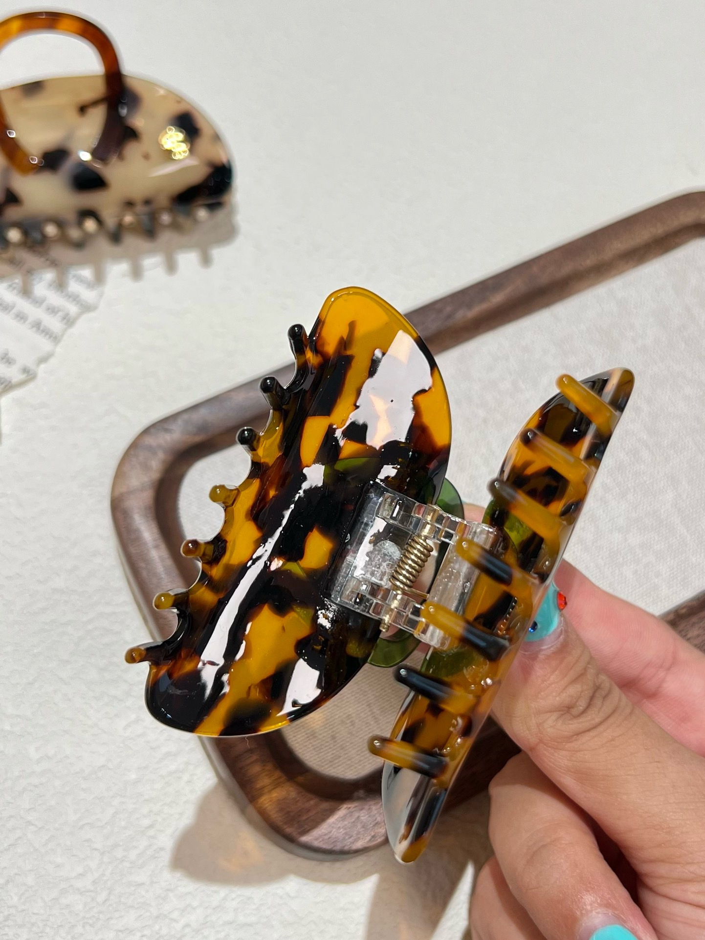 ⚠️由天然环保的细胞膜质醋酸板材手工打磨而成,整个夹子散发着圆润的光泽,这是普通塑料材质无法比拟的,再加上金色的小Logo,给人高档的质感~