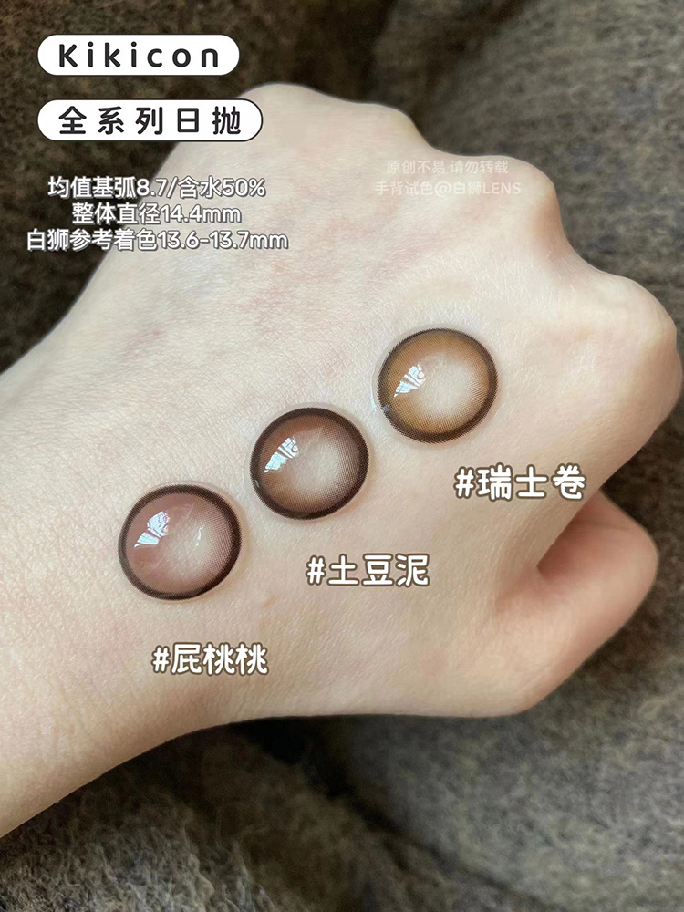 Kikicon旗下 ·瑞士卷&土豆泥&屁桃桃|14.4mm白狮参考着色大直径|日抛