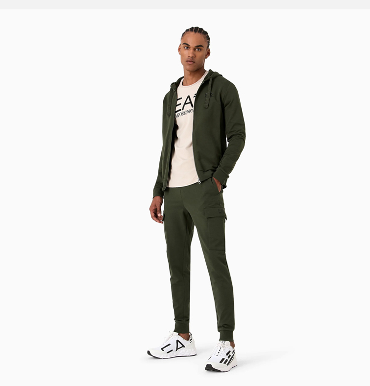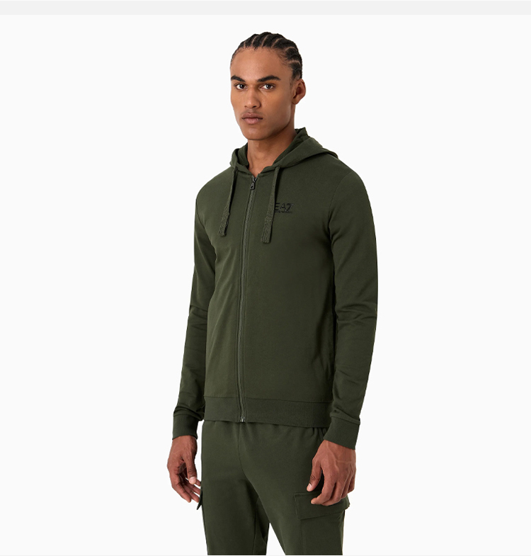 EMPORIO ARMANI 阿玛尼 男士棉质字母徽标贴花连帽卫衣 绿色 8NPM03 PJ05Z 1845