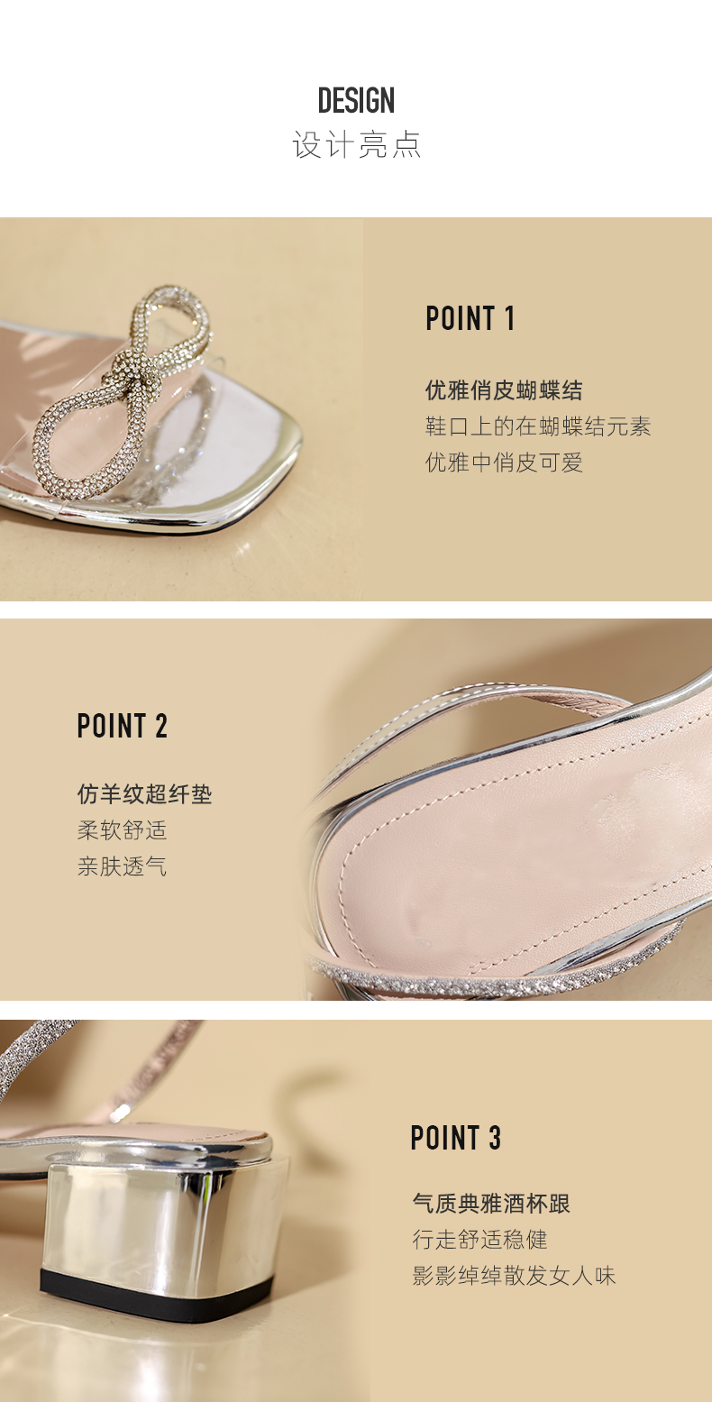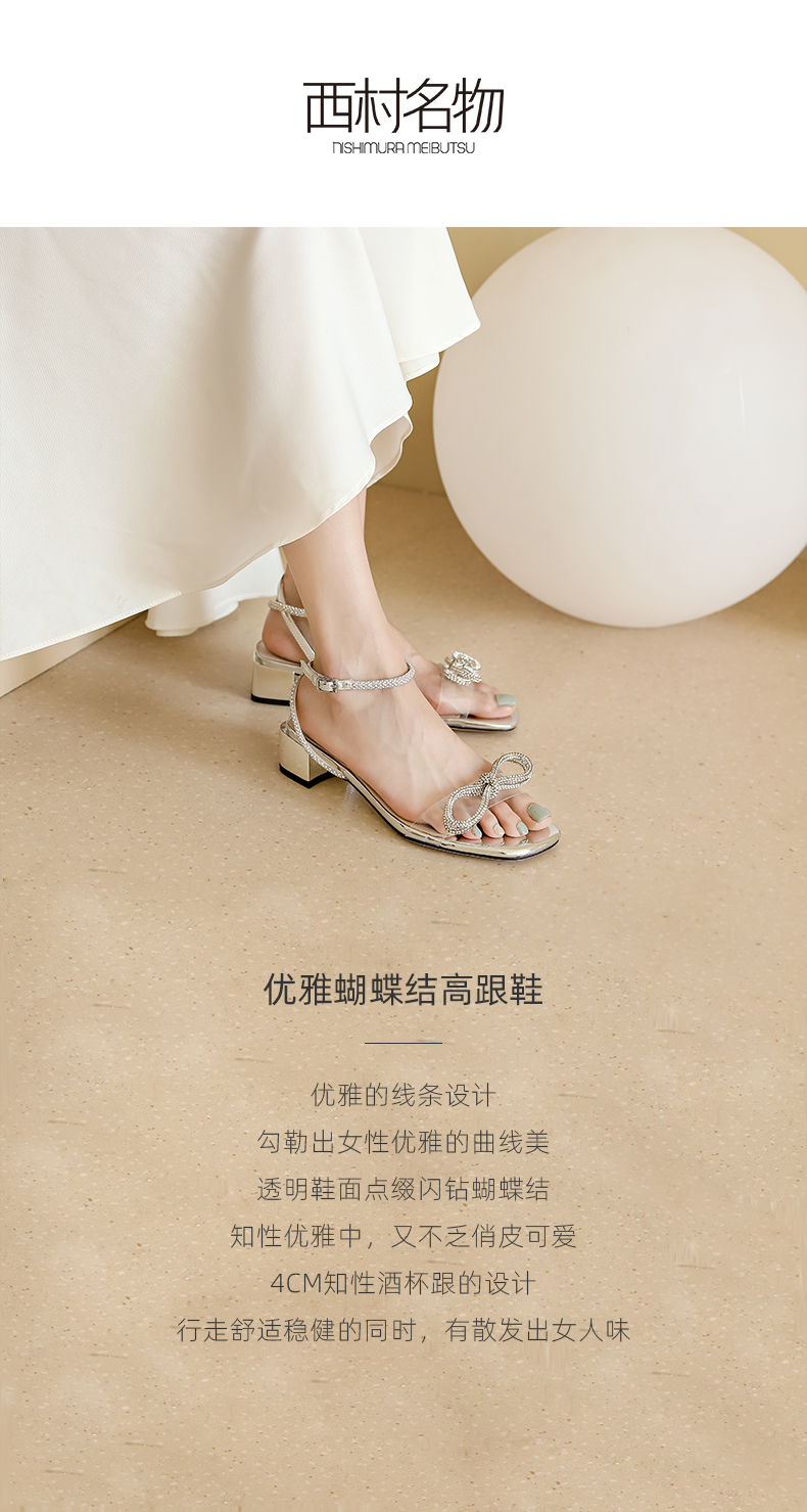 miuo西村名物2021夏新款一字带高跟粗跟凉鞋蝴蝶结仙女鞋小众设计T21BG23891