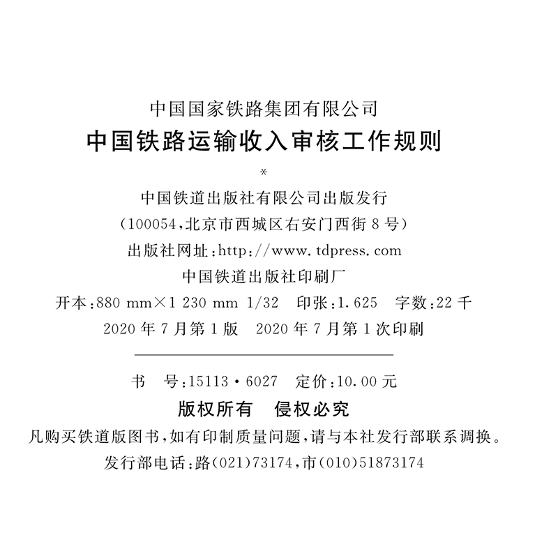 15113.6027中国铁路运输收入审核工作规则(铁财﹝2020﹞98号)