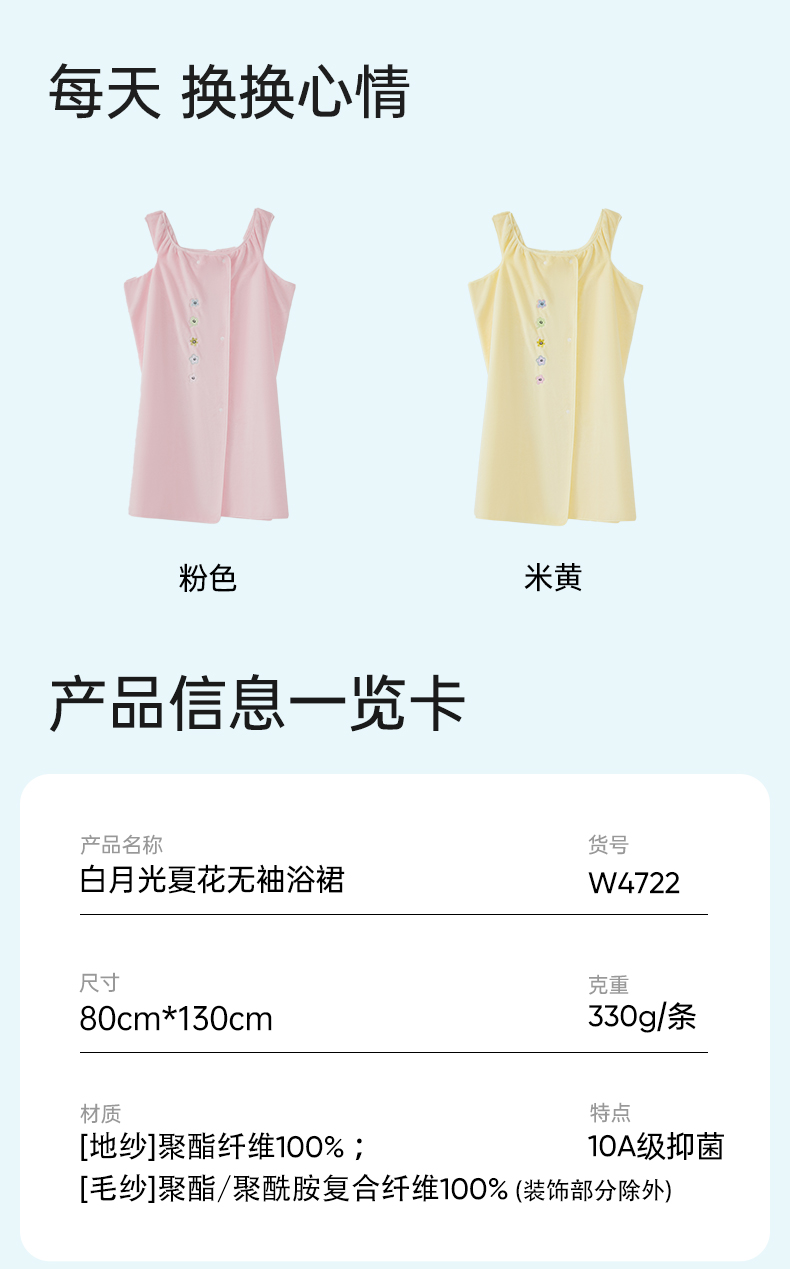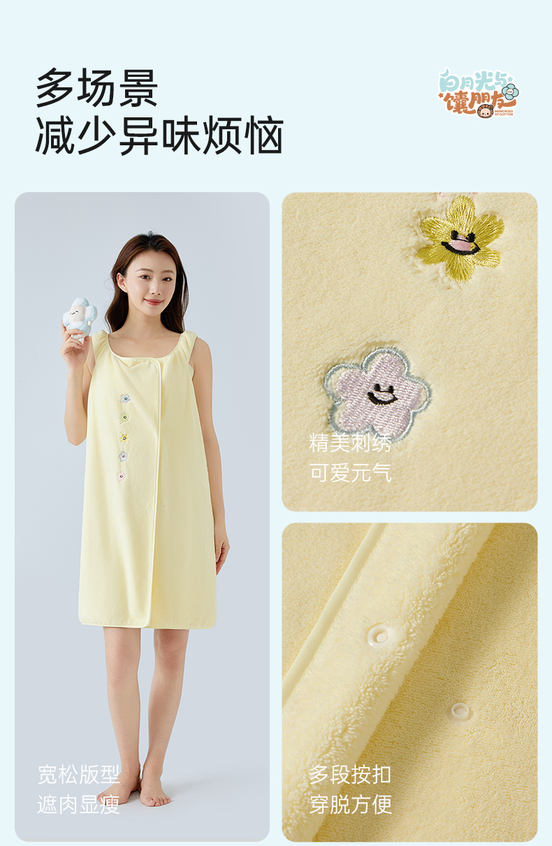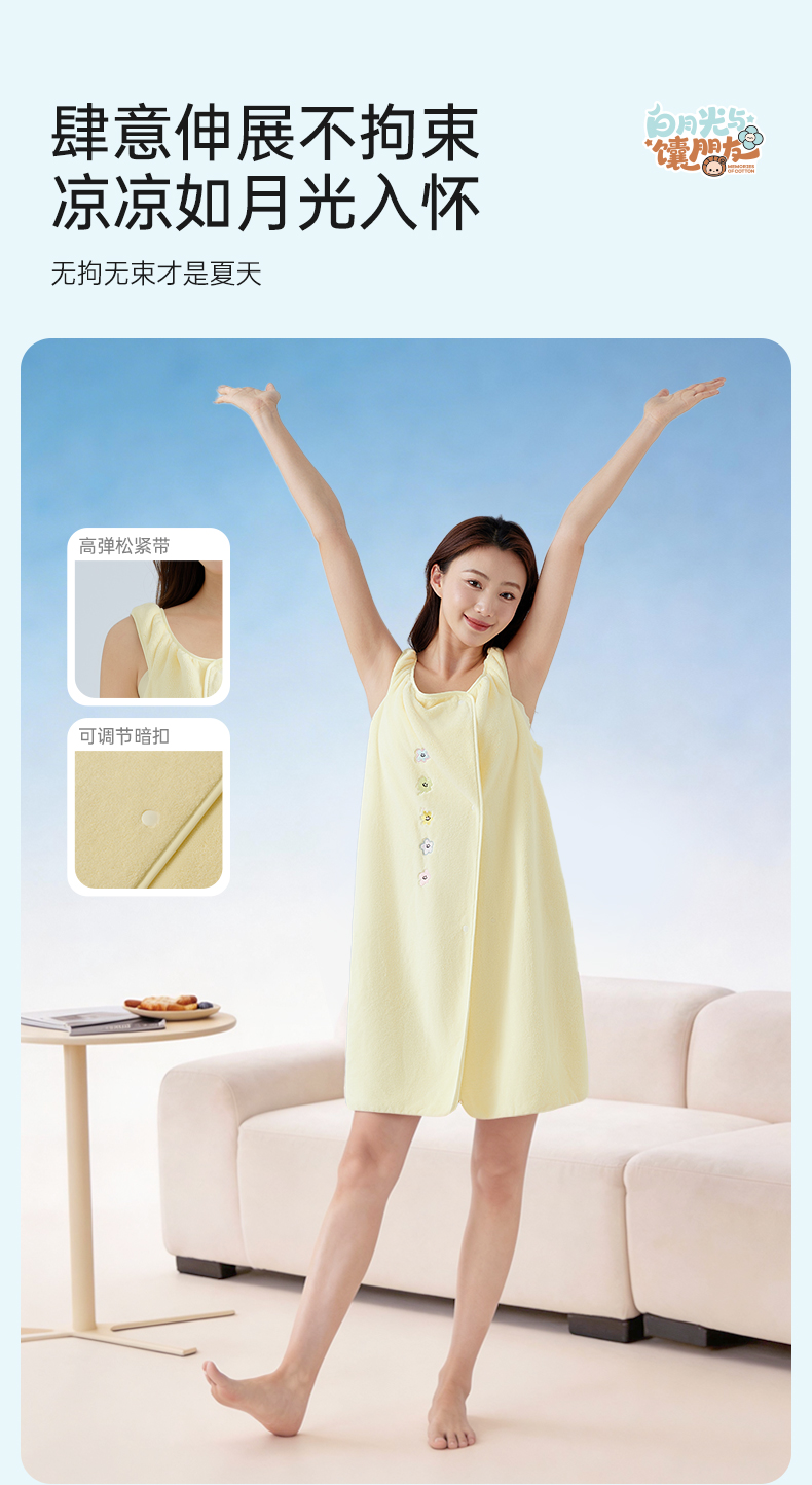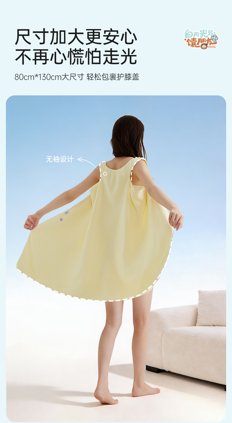 洁丽雅白月光夏花无袖浴裙抗菌家用吸水洗澡家用不掉毛女士加长