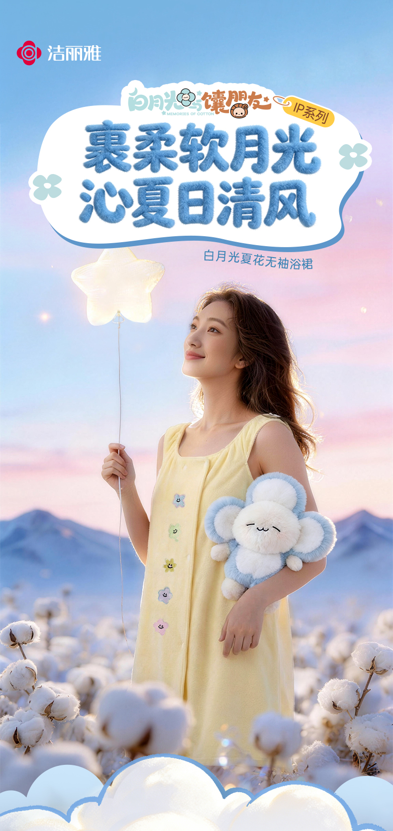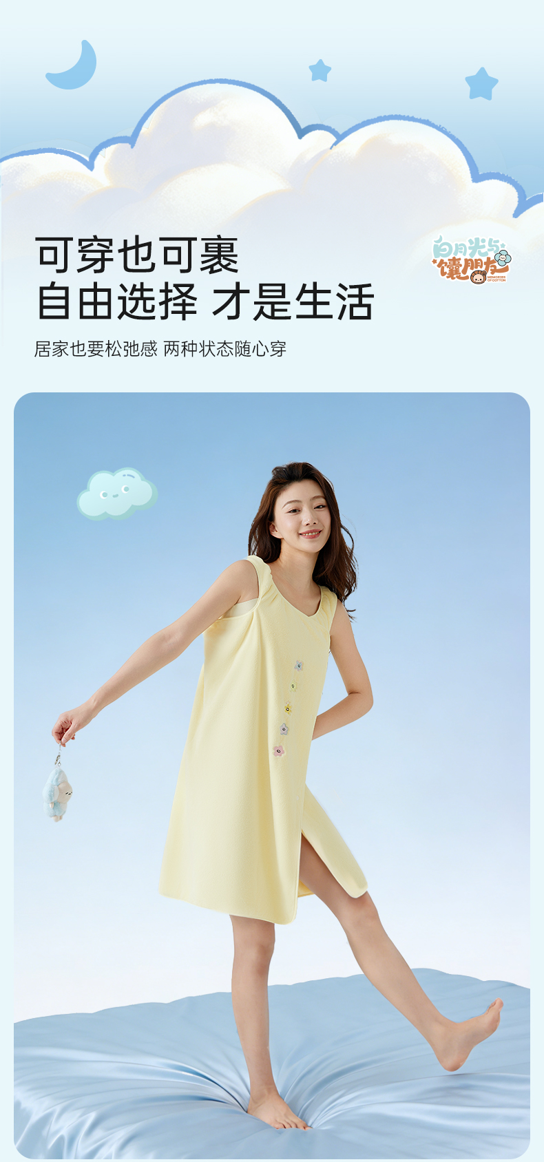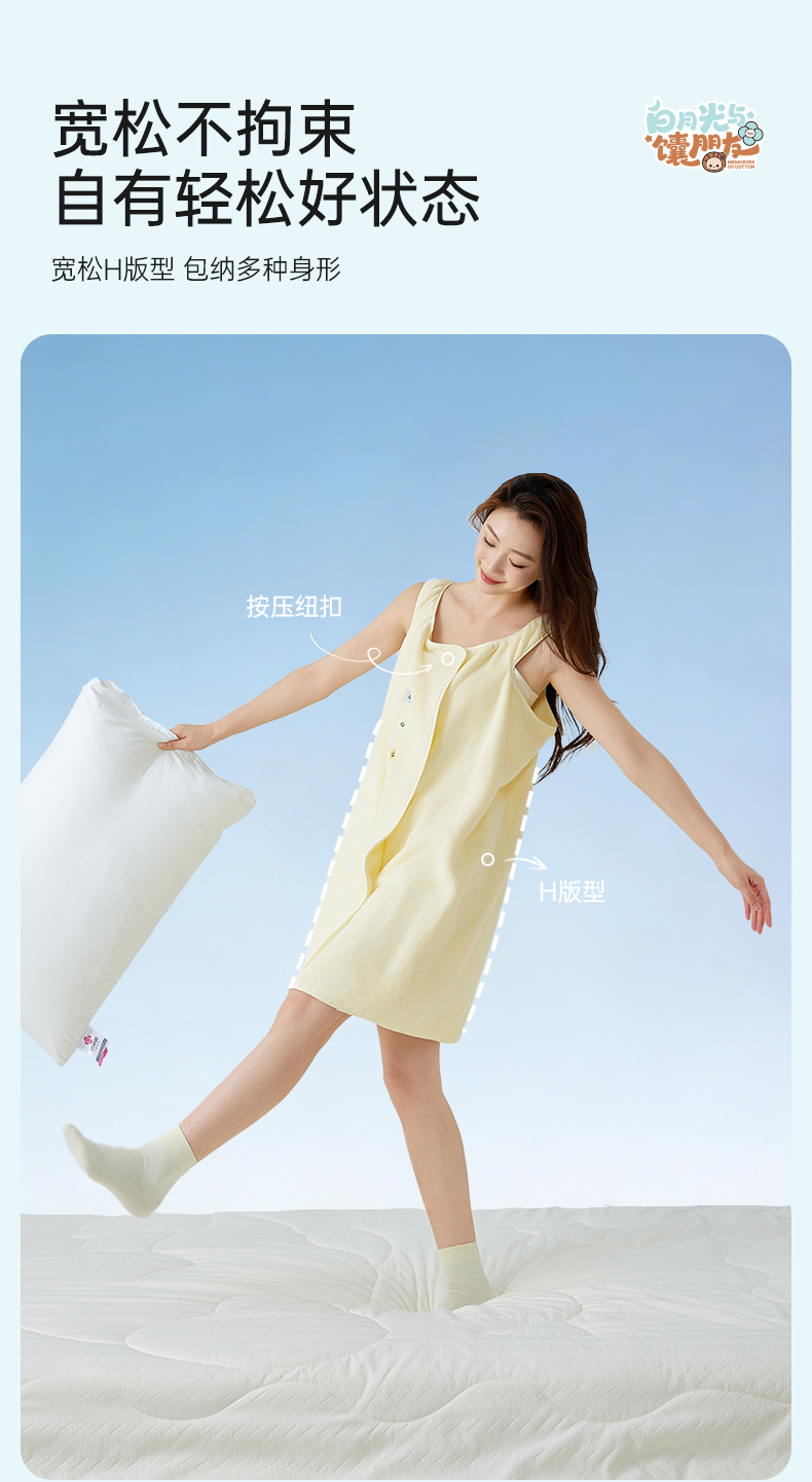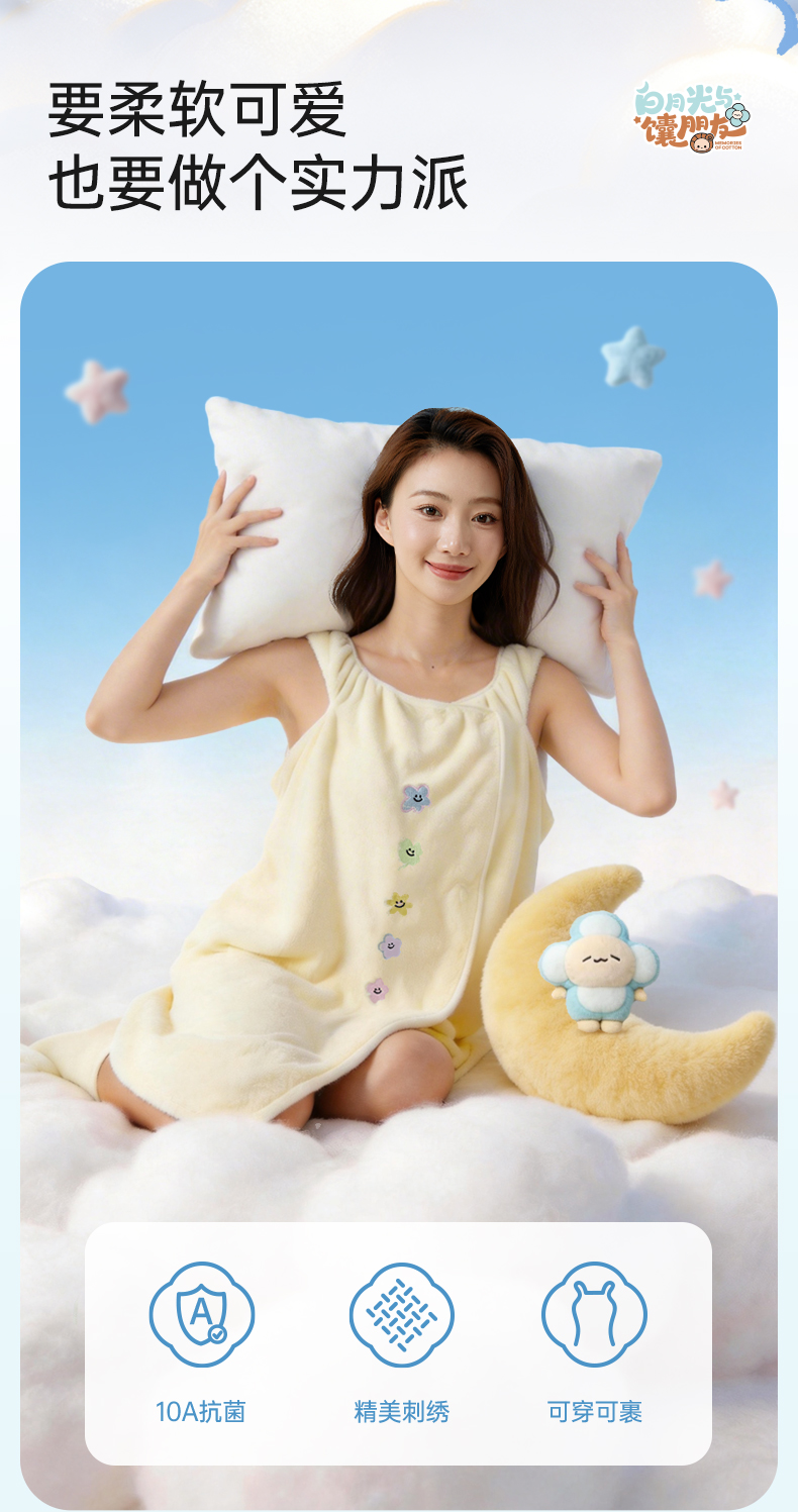 洁丽雅白月光夏花无袖浴裙抗菌家用吸水洗澡家用不掉毛女士加长