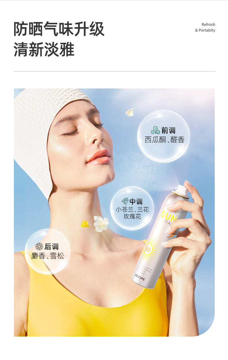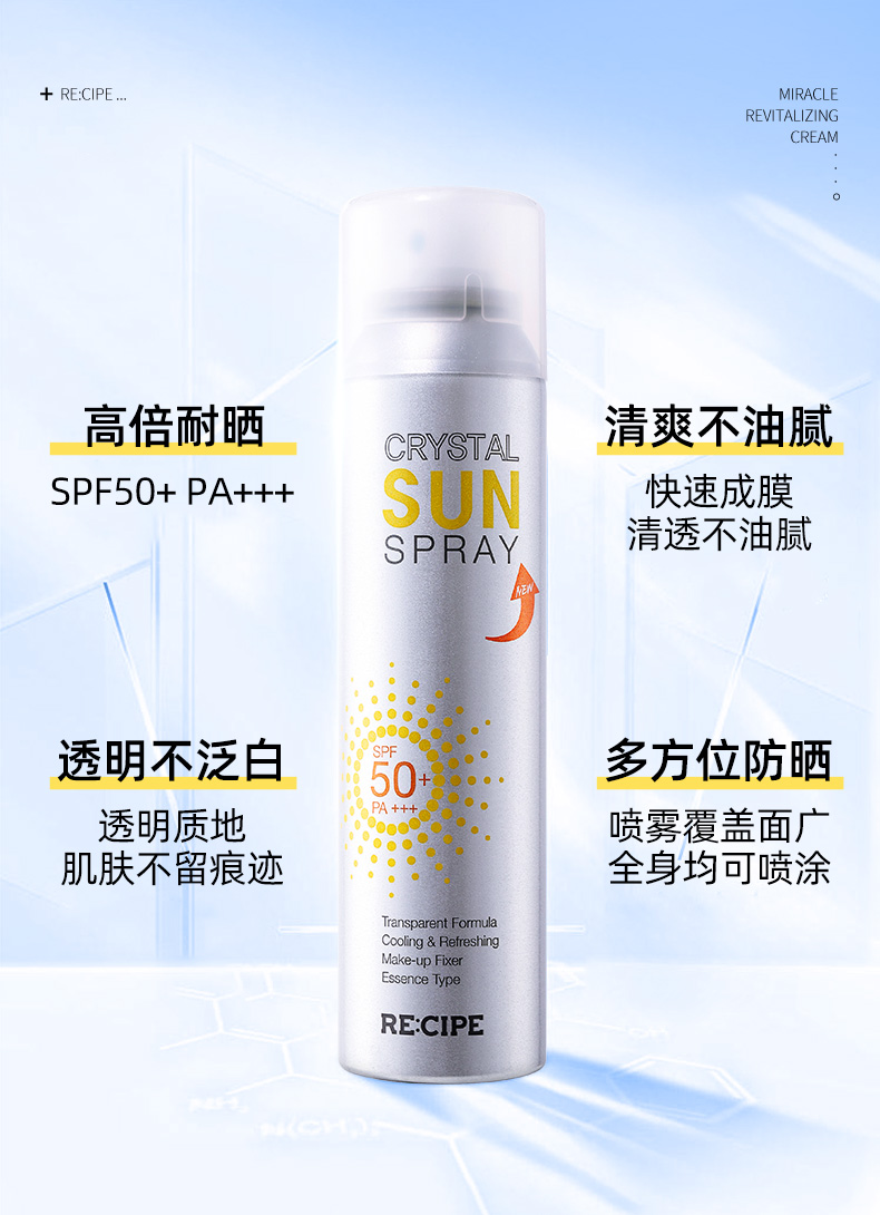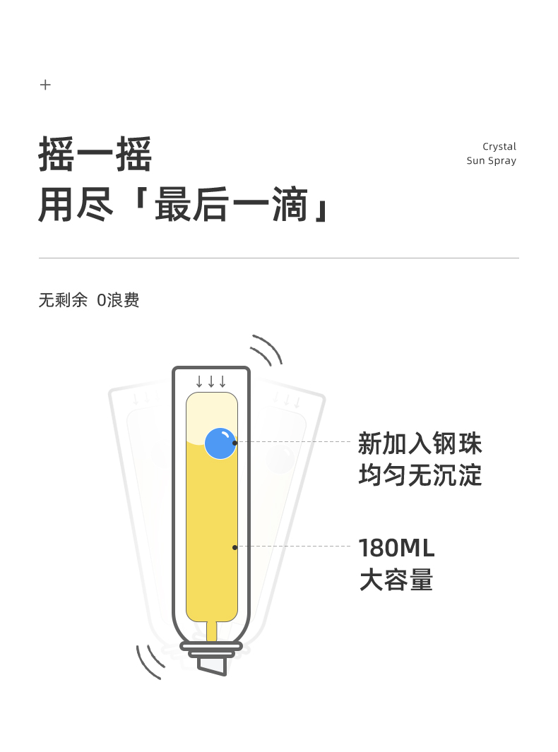 玥之秘水晶防晒喷雾 180ml SPF50+ 无色透明防水防汗面部脖子身体美肤白防晒霜乳户外