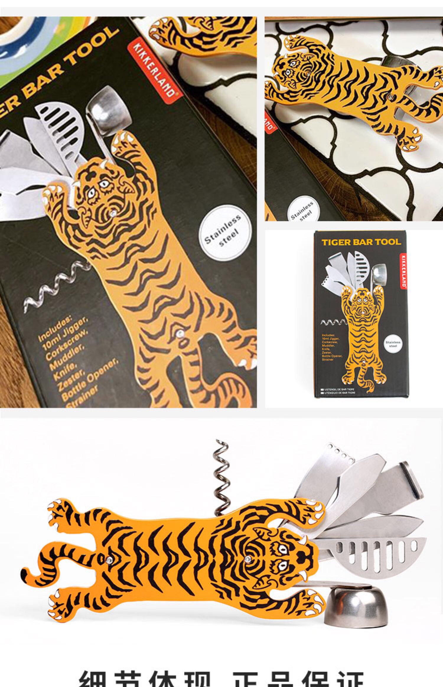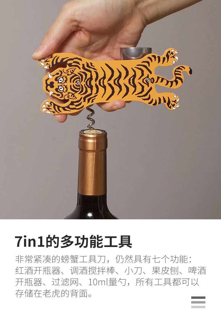 美国进口-kikkerland老虎造型多功能开瓶器高档不锈钢红酒创意家用-会员8折