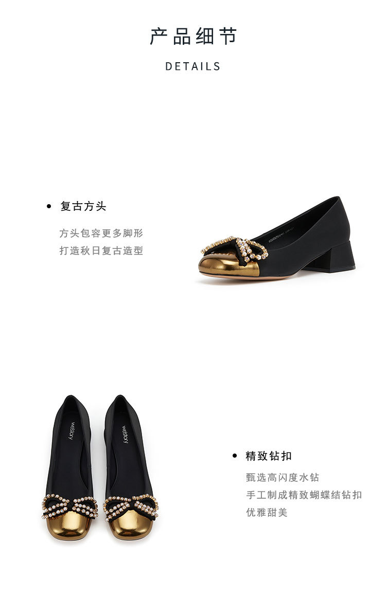 2023年秋季新款粗低跟舒适蝴蝶结女鞋W23CE73121