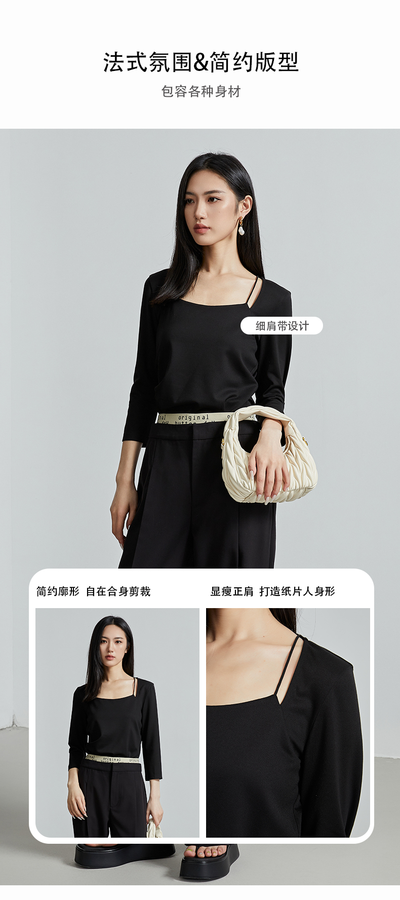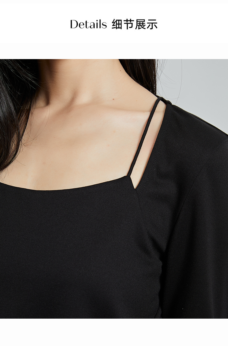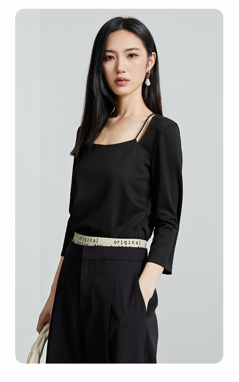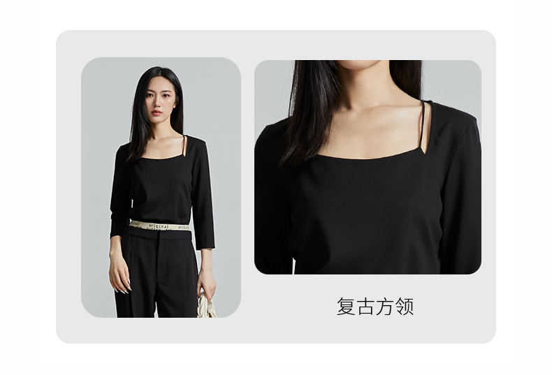oldcolour春秋季新款百搭时尚纯色方领九分袖打底衫上衣女P320204A1
