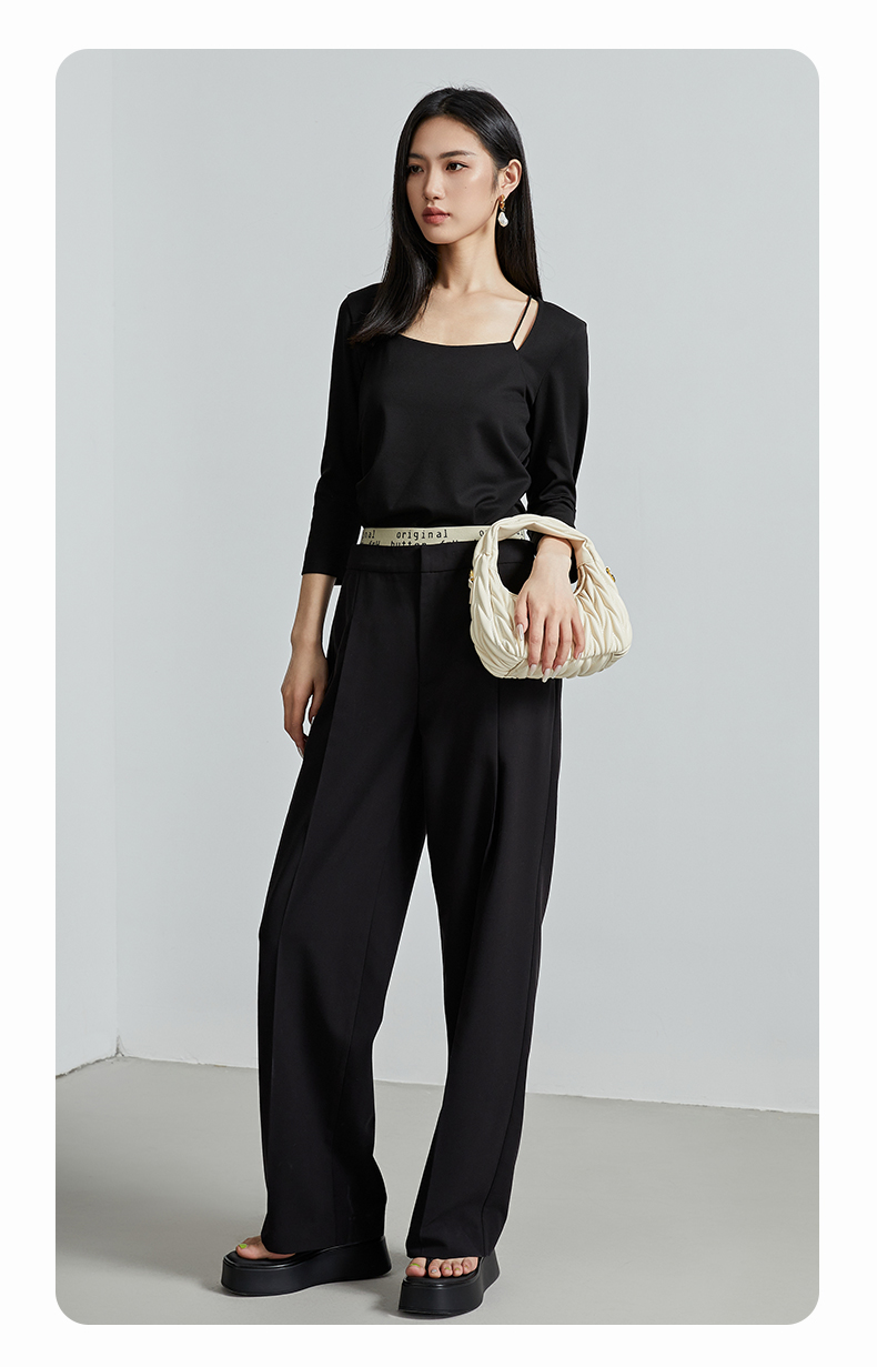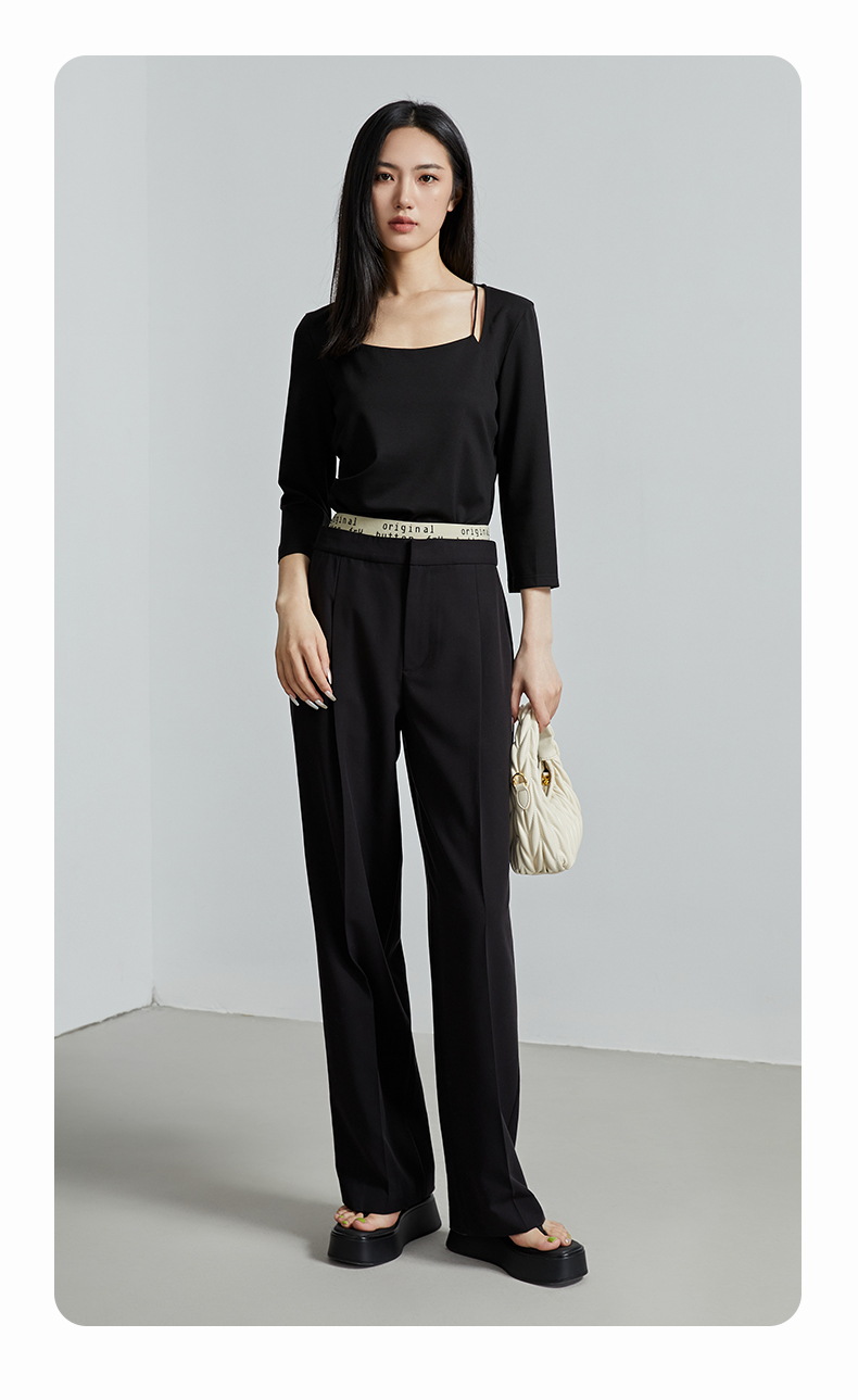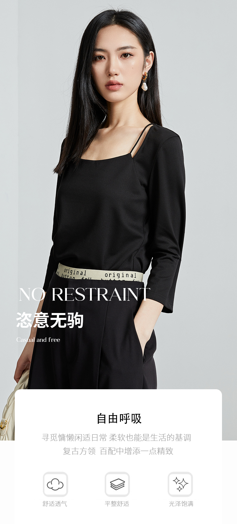oldcolour春秋季新款百搭时尚纯色方领九分袖打底衫上衣女P320204A1