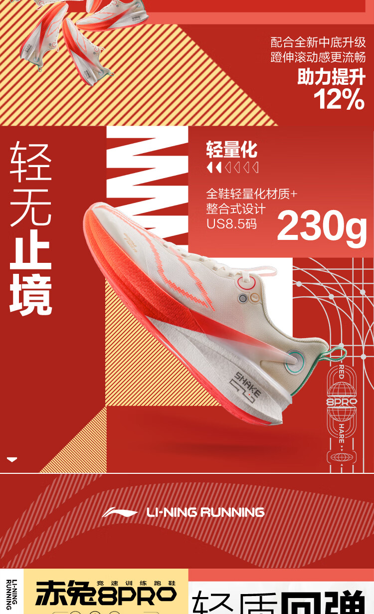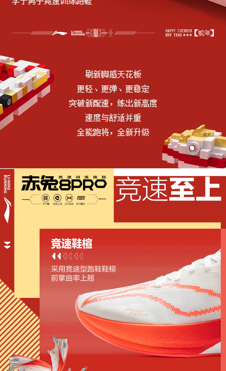 李宁 赤兔8PRO 蛇年限定跑步鞋男鞋马拉松训练肖战同款体测跑鞋ARPV003