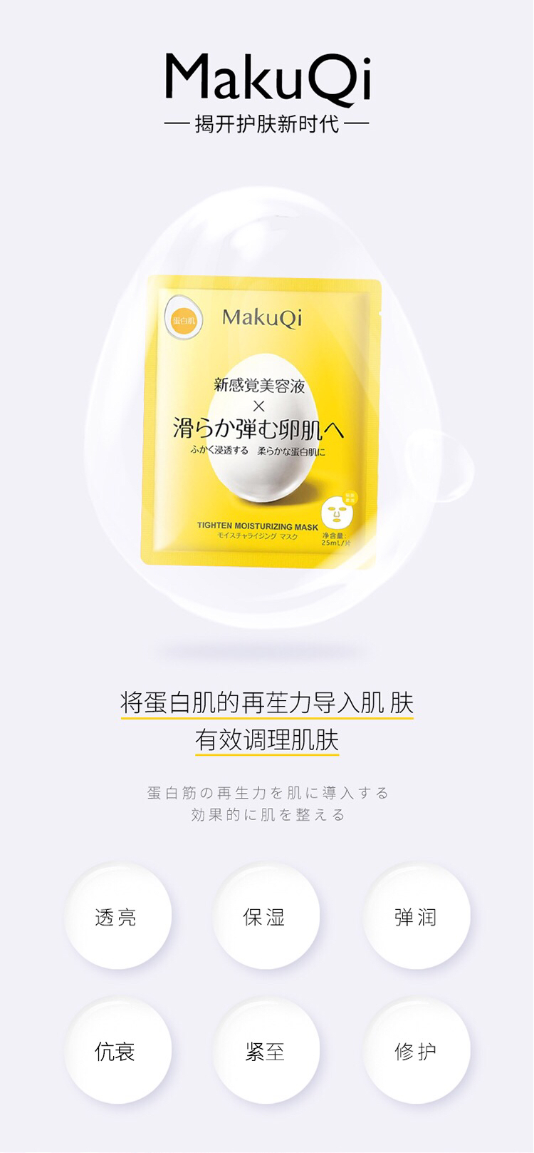 日本makuqi时二蛋壳面膜-补水保湿亮肤5片装-会员6折