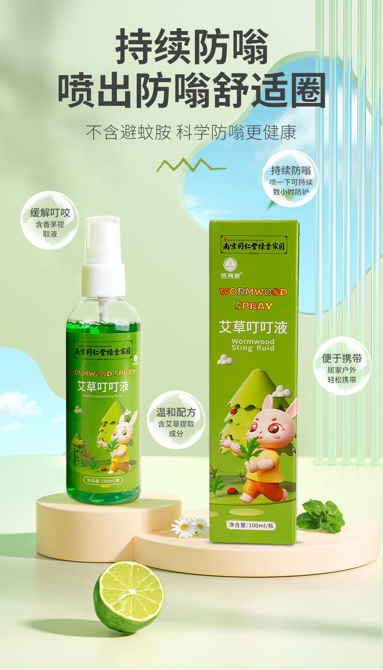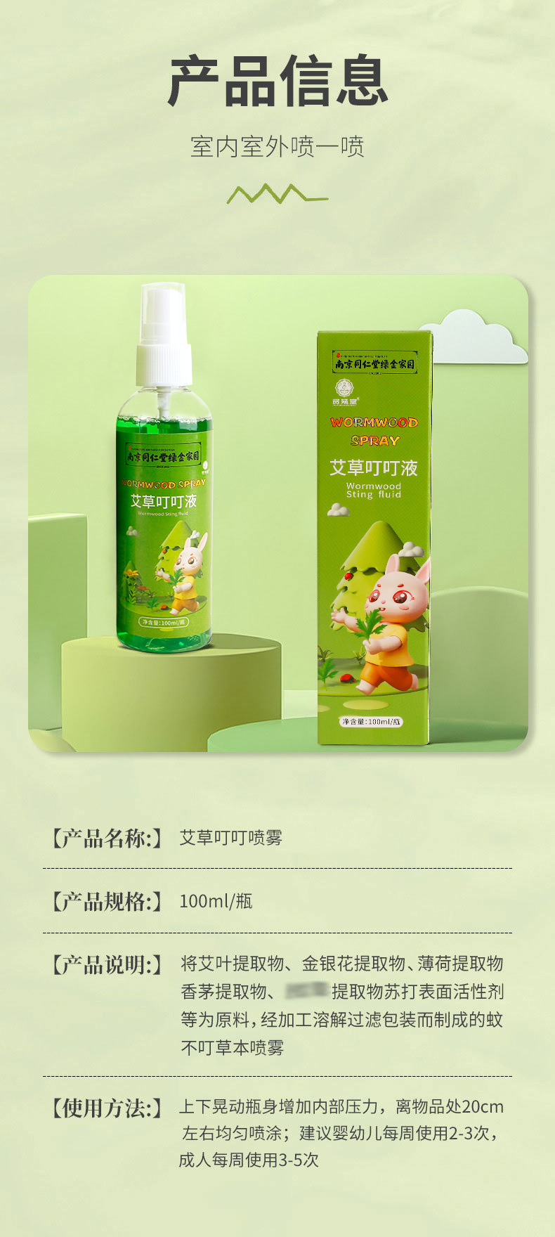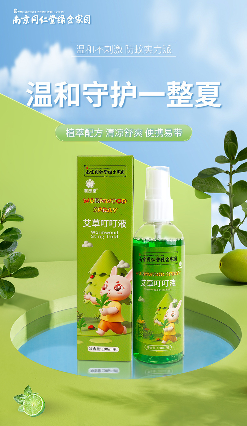 【便携易带!艾草叮叮驱蚊液】南京同仁堂艾草叮叮液夏季儿童舒缓止痒液便携防叮咬花露水喷雾,按压喷头设计,持续防嗡 喷出防嗡舒适圈。ry